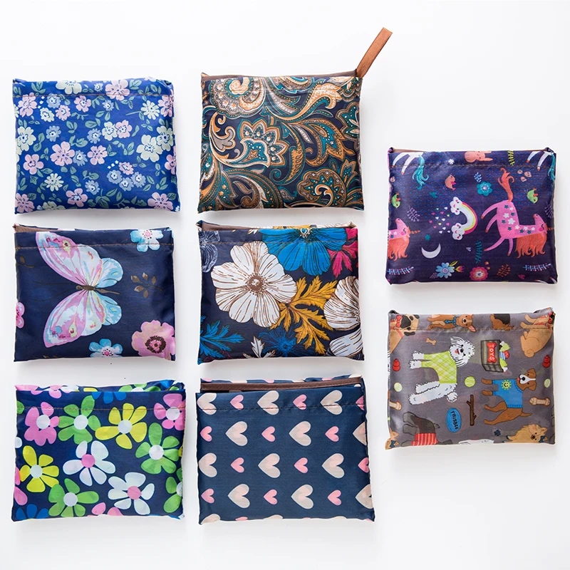 Новая нейлоновая складная сумка для покупок Экологически чистая женская сумка для многоразовая сумка для покупок с короткими ручками с цветочным принтом, фруктами, овощами, карманом для продуктов