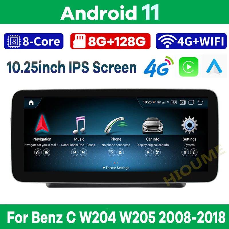 Автомагнитола 8 + 128G Android 11, мультимедийный плеер с GPS-навигацией для Mercedes Benz C V Class W204 W205 GLC X253 W446, стерео видео
