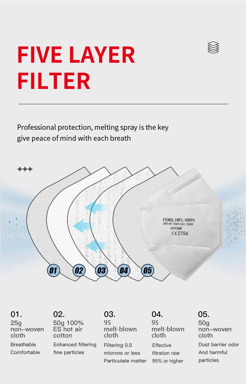 Обеспечивает защиту от тумана и дымки PM2.5, пыли, капель, пассивного дыма, автомобильных выхлопных газов, пыльцы, формальдегида, бактериальной фильтрации etc.95 % по крайней мере.
