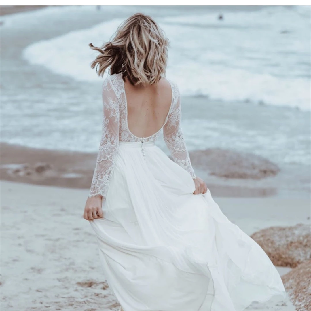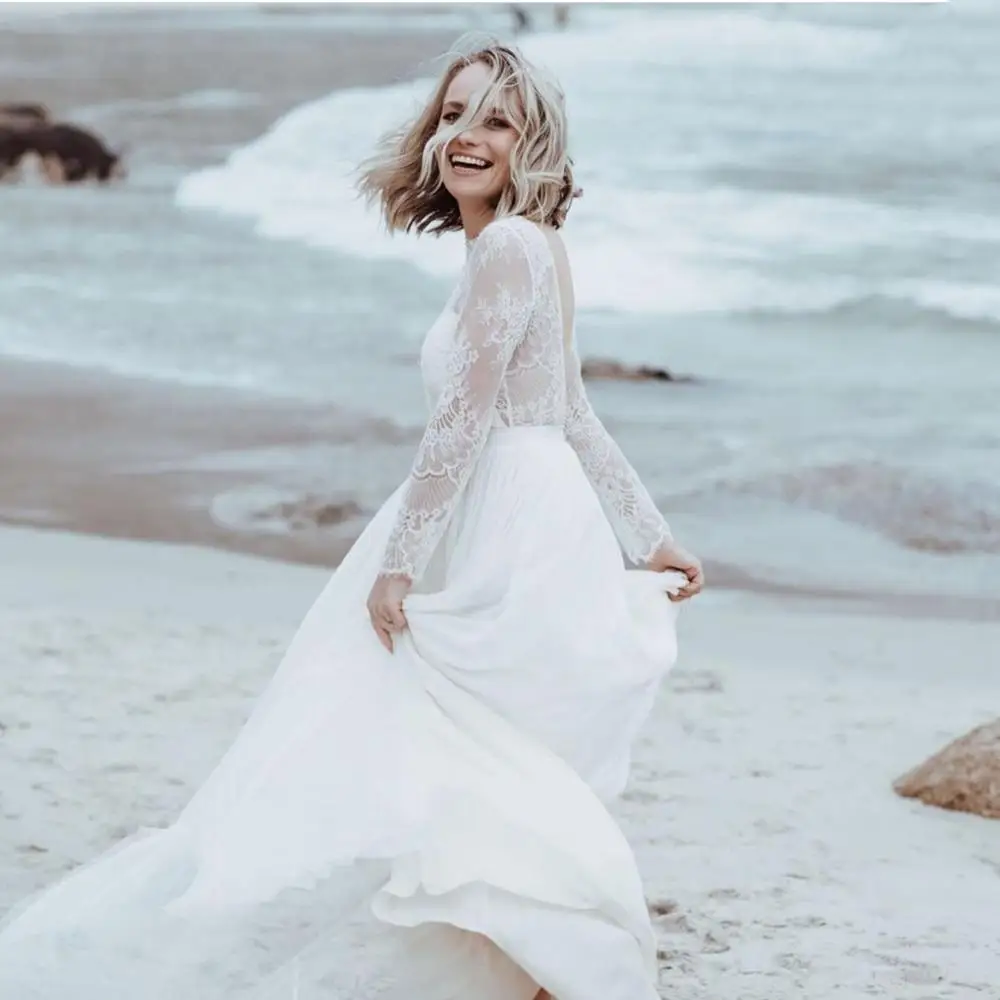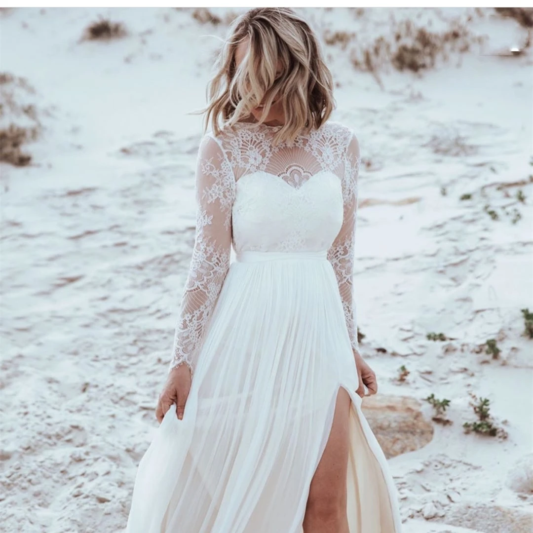Женское свадебное платье с длинным рукавом, богемное белое,