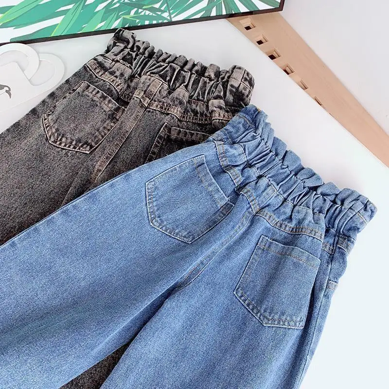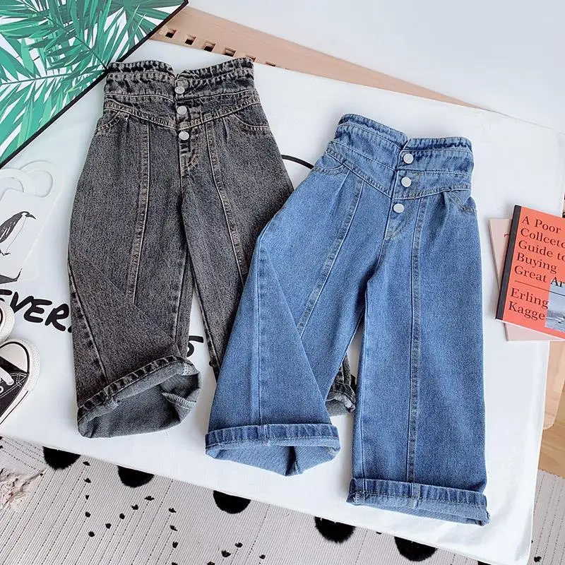 Джинсовые брюки для девочек, с высокой талией, широкие, на осень, 100-140 см, 2020