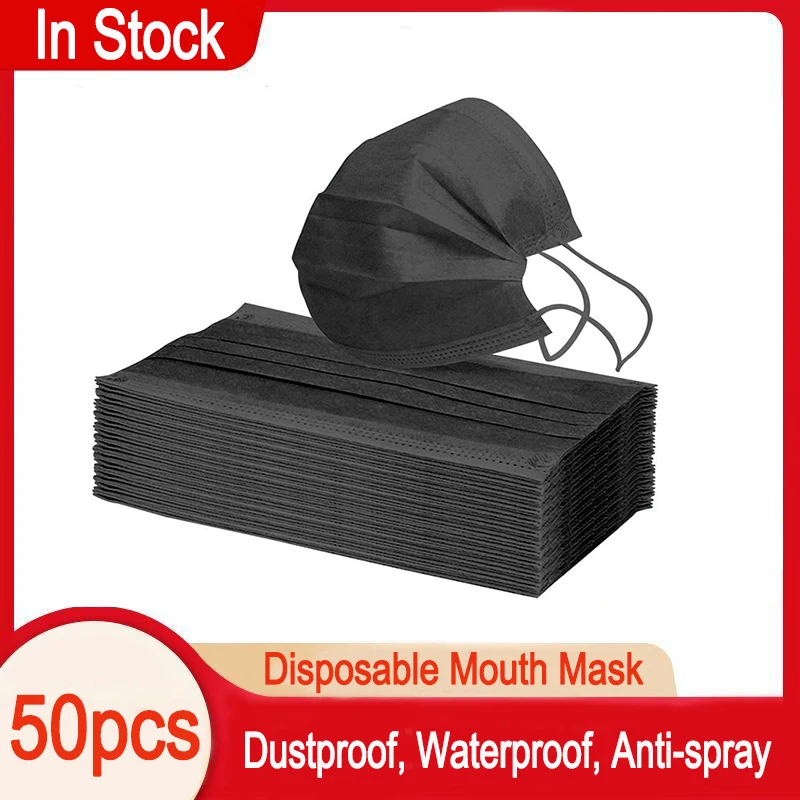 50 шт. маска одноразовая маска Черный нетканый 3-слойный фильтр пыл...