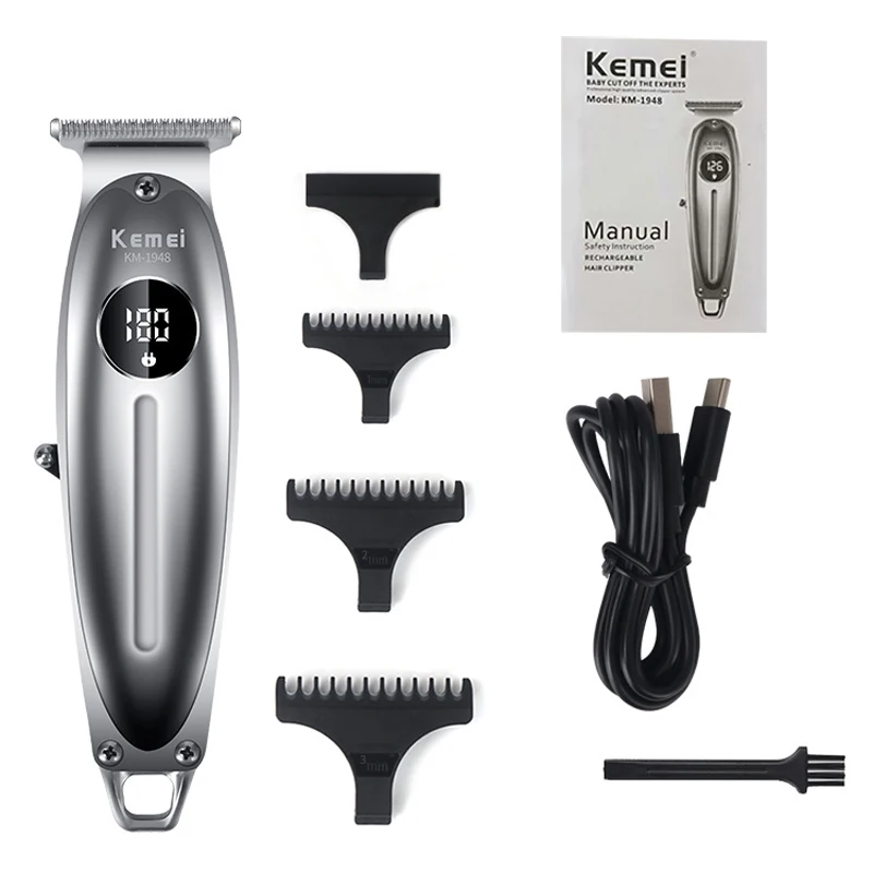 Kemei KM-1948 металлическая LCD машинка для стрижки волос для мужчин электрическая Беспроводная Машинка для стрижки волос 0 мм baldheed T Blade отделка стрижка машина