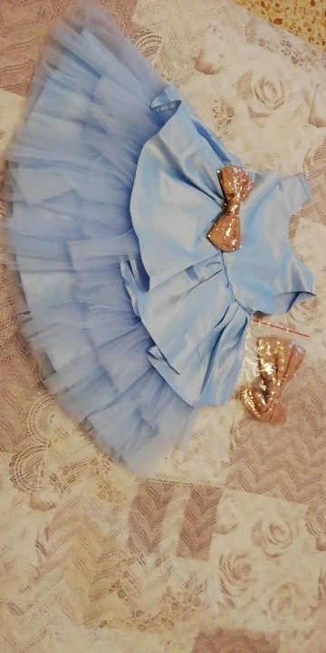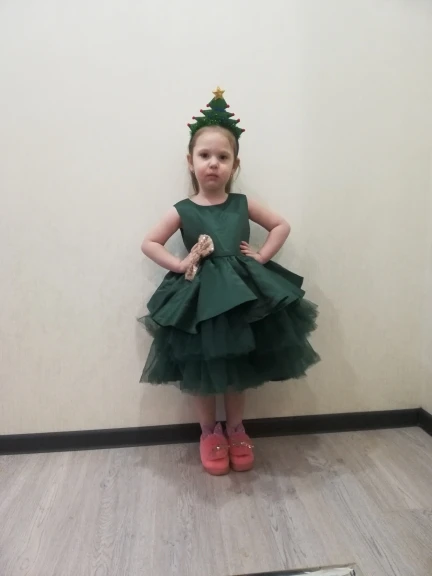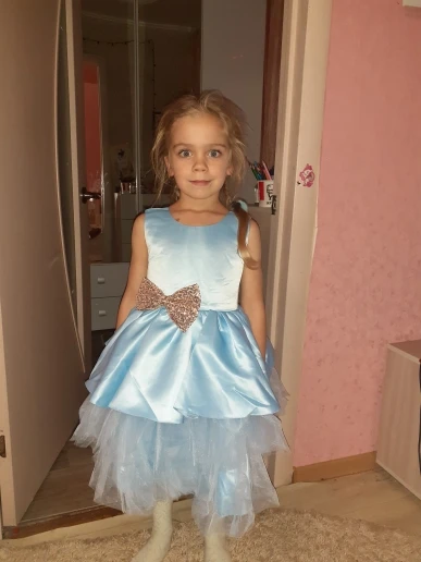 Очень красивое платье, аккуратно сшито, идёт в размер, на 3 года заказывала размер 4, нам большевато.