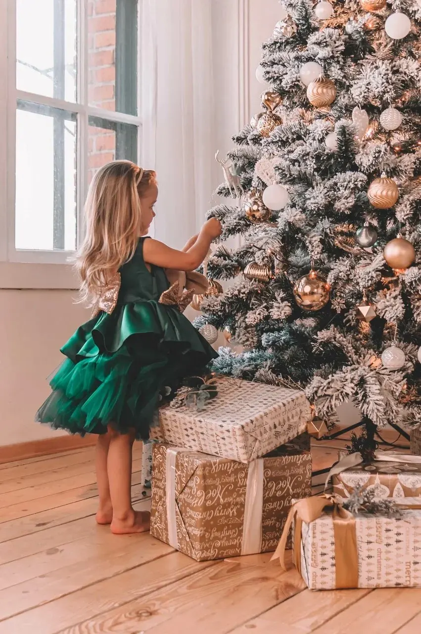 Платья для маленьких девочек, платье принцессы с блестками и бантом для девочек, платье на день рождения, свадьвечерние вечеринку, детская Рождественская вечерняя одежда