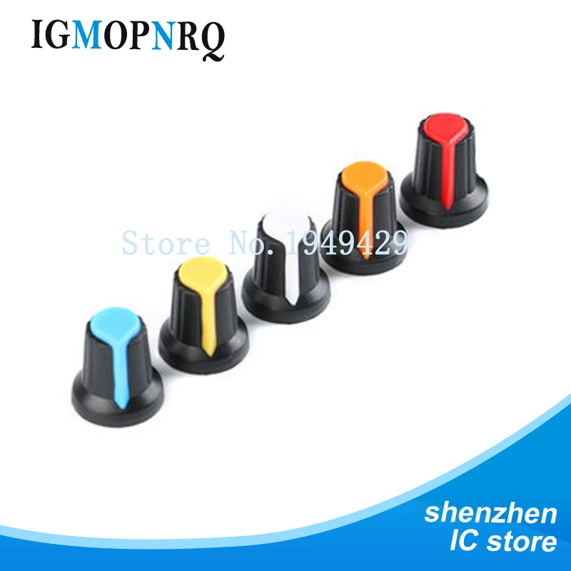 5 значений * 6 шт. = 30 шт. WH148 крышка ручки потенциометра (медный сердечник) 15x17 мм AG2 красный белый желтый оранжевый синий
