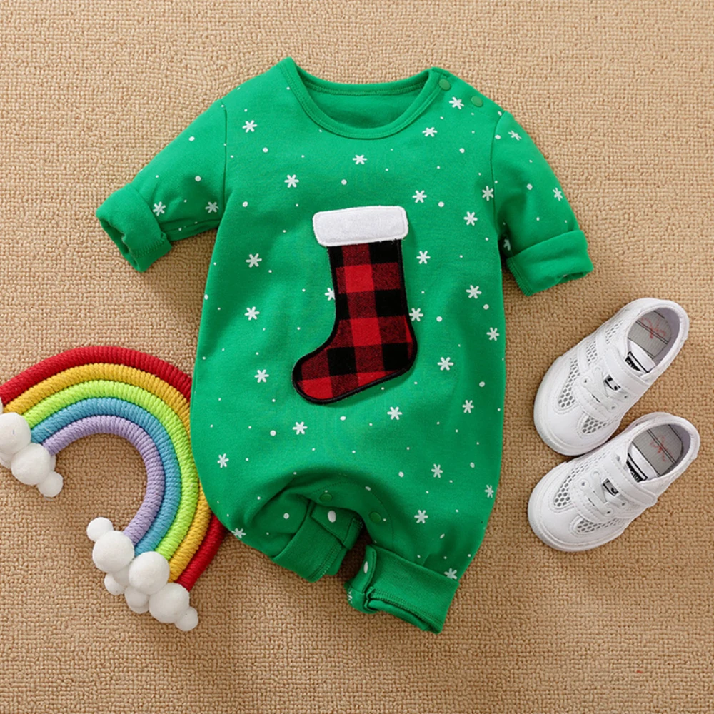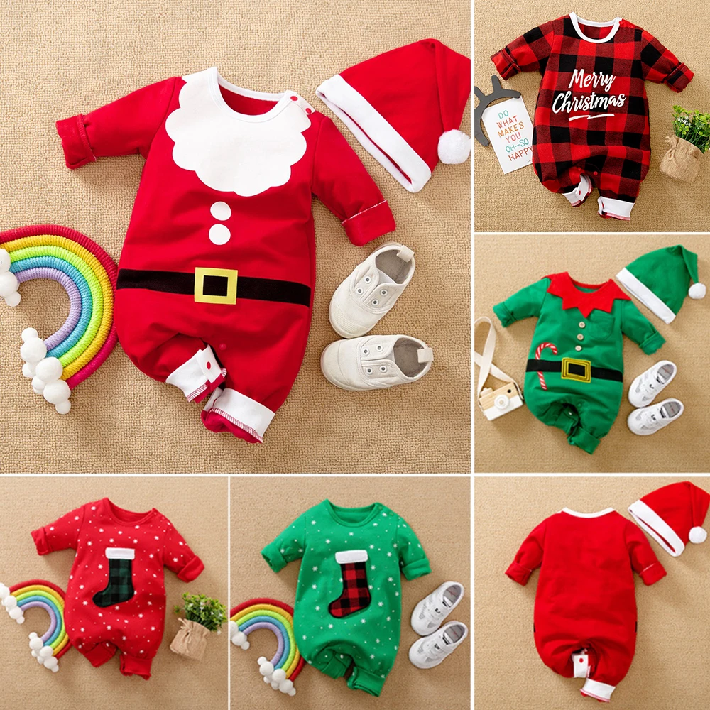 Новорожденный мальчик девочка одежда Рождество красный и зеленый с длинным рукавом цельный комбинезон наряды детская одежда для малышей