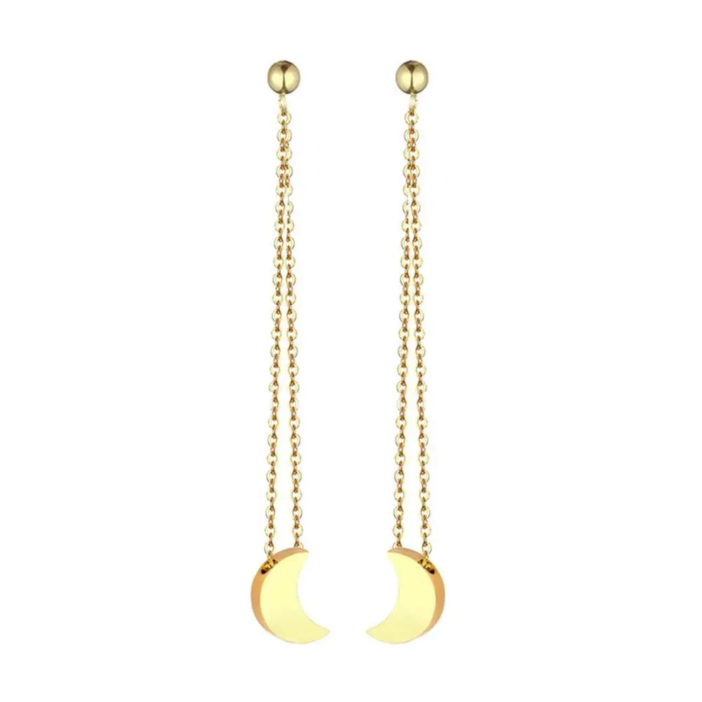 Корейские женские длинные серьги золотого цвета из нержавеющей стали в виде звезды луны сердца, Очаровательная подвесная цепь, серьги с кисточками для женщин, ювелирные изделия