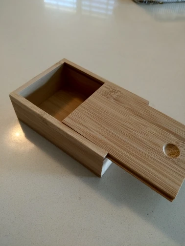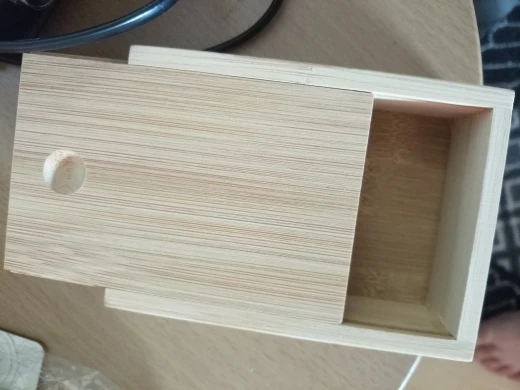 Это простая маленькая коробка, размер соответствует описанию. Только проблема: открывается очень, очень легко. Так как я купил это, надеясь использовать его для небольших карт Таро для друга, который обычно кладет эту коробку в ее сумку, было бы непродуктивно иметь коробку постоянно скользящей. Я пробовал найти решение, которое не было бы простой резиновой лентой вокруг него, И, скорее всего, Сверлим несколько тонких гвоздей в крышку и приклеим Тонкий Магнит на внутреннюю сторону, где он закрывается, чтобы помочь сохранить его закрытым. Все еще жду магнита. Я также использовал пирографию, чтобы нарисовать дизайн на вершине, которая сработает лучше, чем ожидалось. Дерево приятное, запах хороший, но, возможно, используйте немного наждачной бумаги по бокам и внутри, так как в противном случае вы можете в результате случайного контакта с некоторыми брызгами в руках/пальцах.