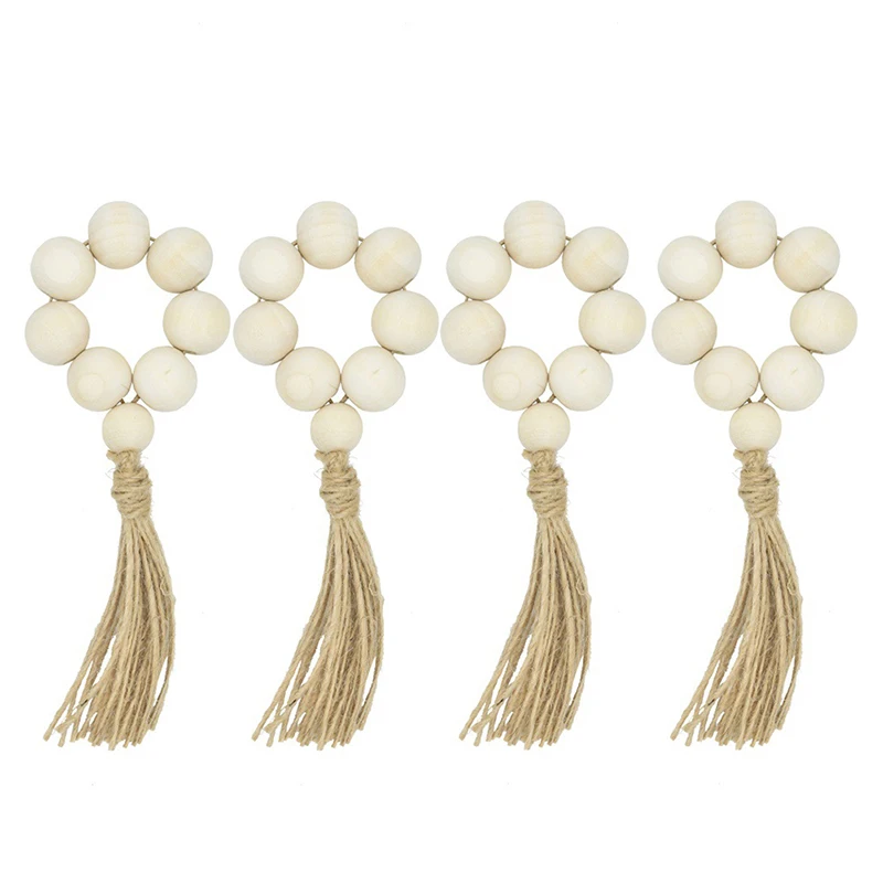 4 шт., деревянные кольца для салфеток с бусинами, держатель для свадеб, вечерние, Домашний Настольный Декор для ужина, украшение для рабочего стола