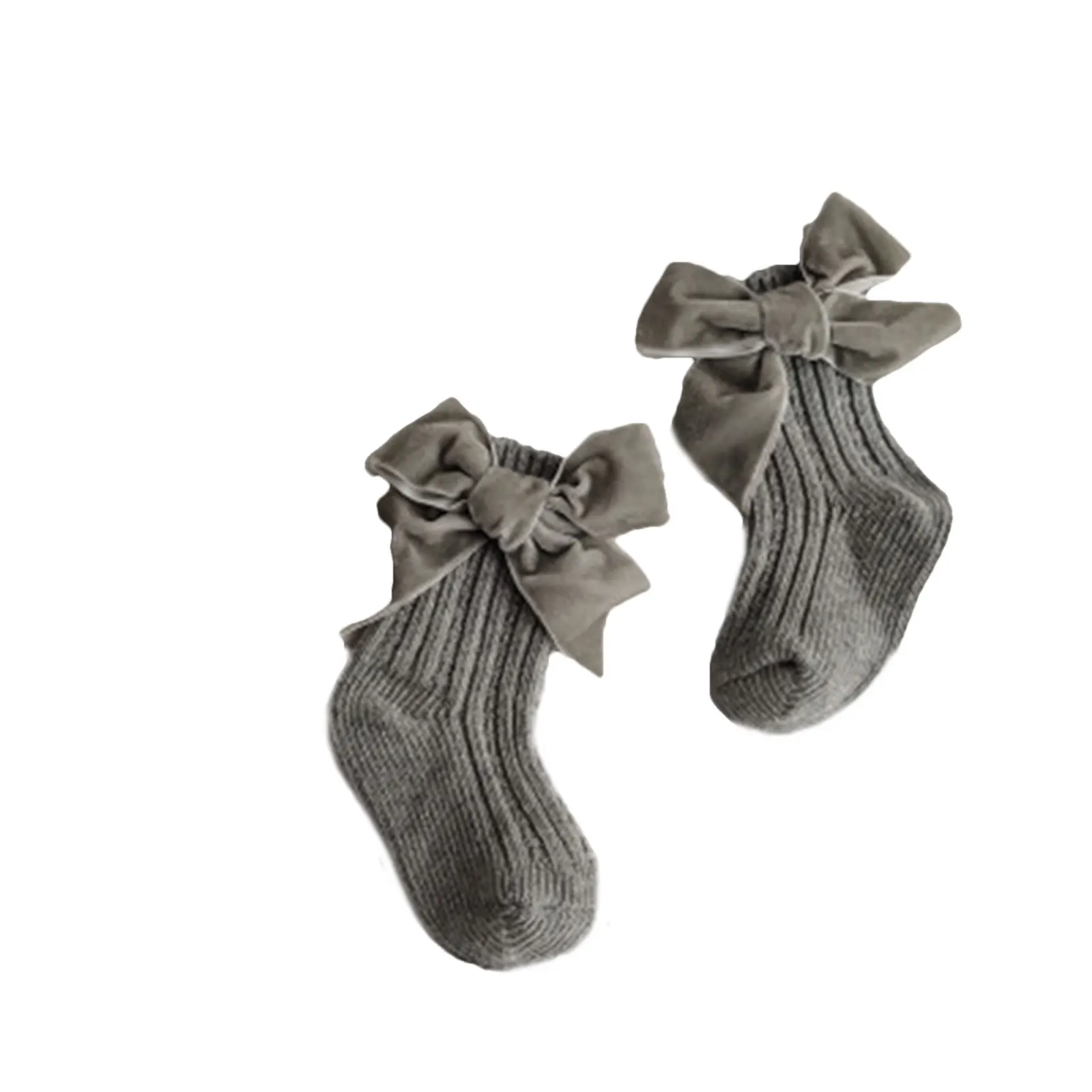 Носки новорожденного малыша для маленьких мальчиков и девочек, Однотонные эластичные хлопковые носки длиной по щиколотку с бантом на осень и зиму, От 0 до 5 лет гетры