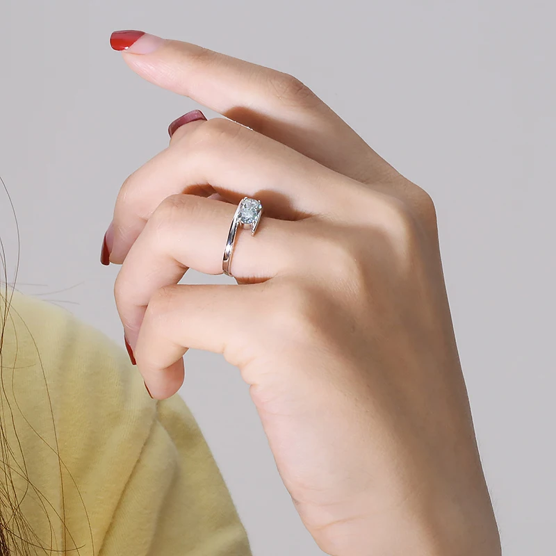 Кольцо женское AEAW с натуральным муассанитом, позолоченное белым золотом 100% пробы, 1 карат