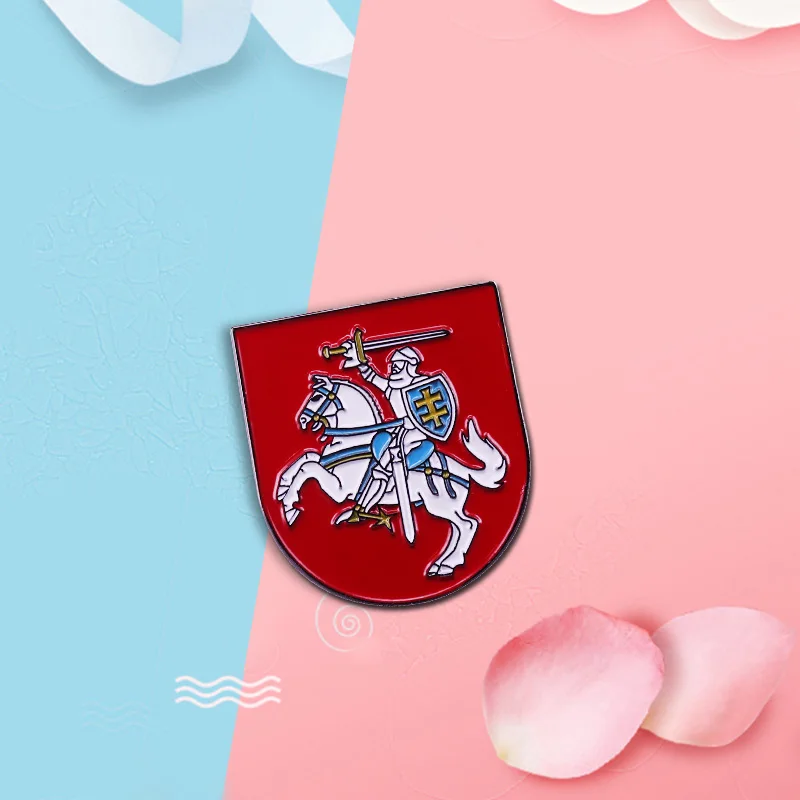 Эмблема витиса, Литва, эмблема Lietuvos herbas, значок, броня, плакированный Рыцарь на лошади, с мечом и щитком