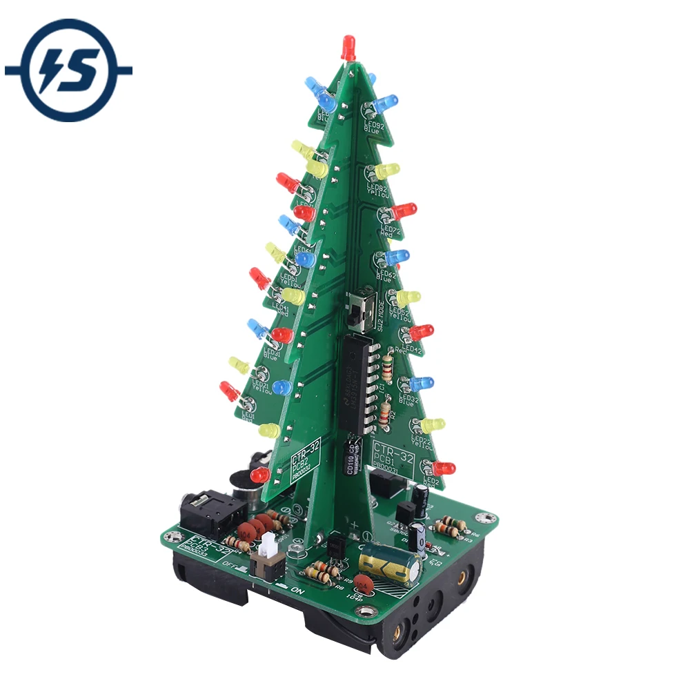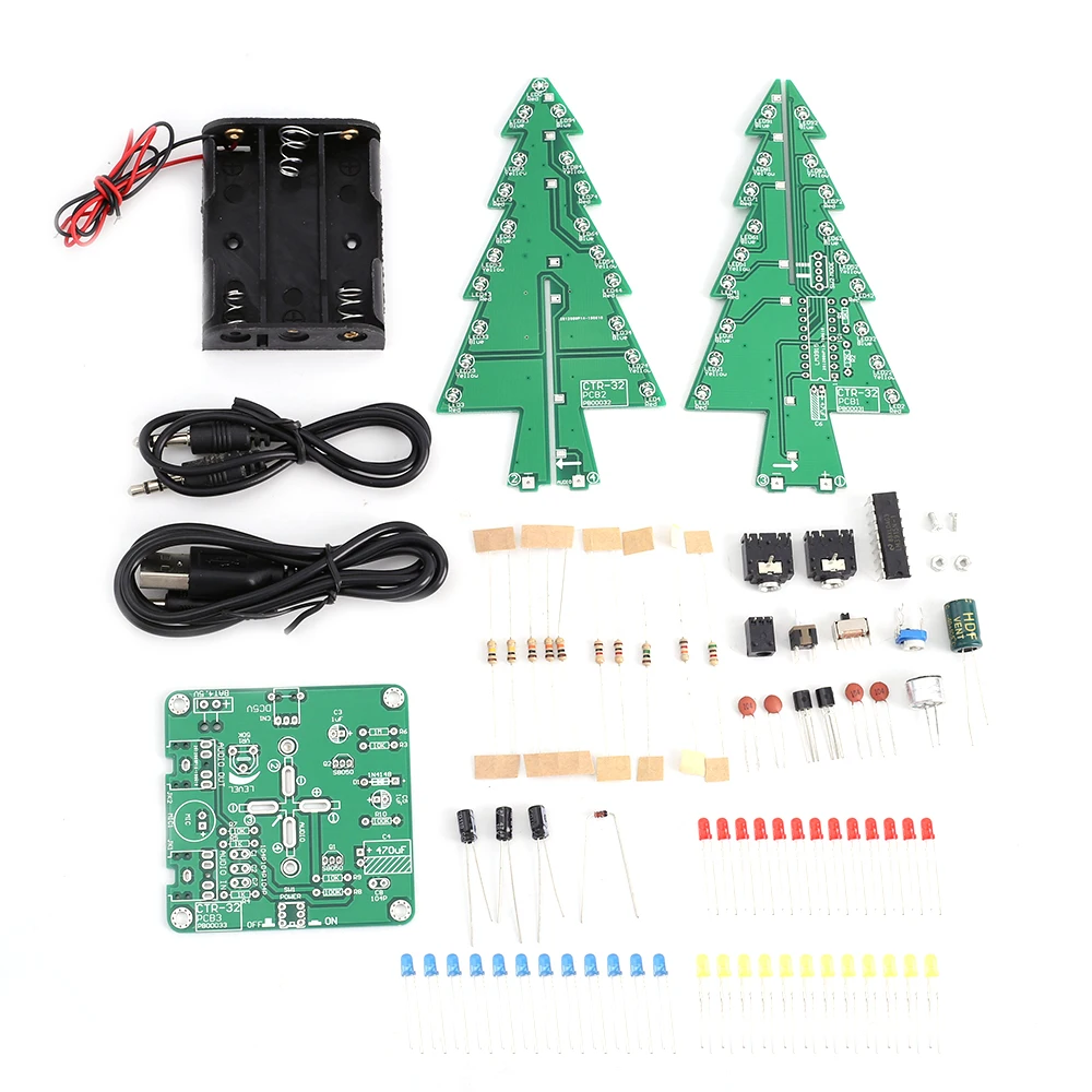 Набор для самостоятельной сборки, красная, зеленая, Синяя светодиодная схема управления звуком, Рождественские елки, светодиодный набор, звуковой мигасветильник, обучение пайке