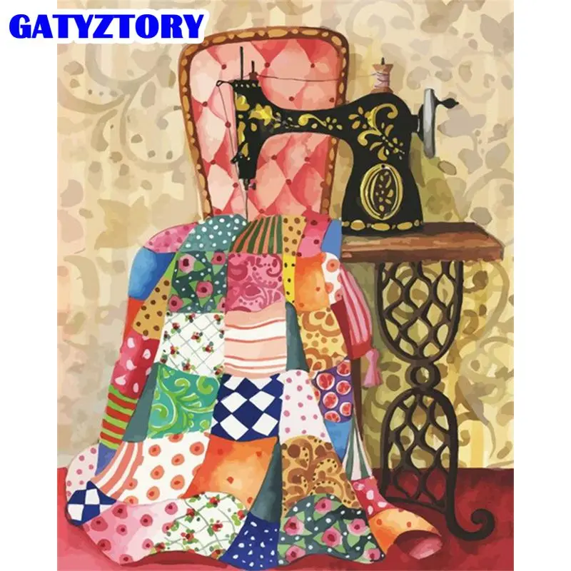 GATYZTORY Набор для рисования по номерам для взрослых, 40x50 см, рамка, красочная швейная машина, пейзаж, краска, акриловое масло, картина, декор
