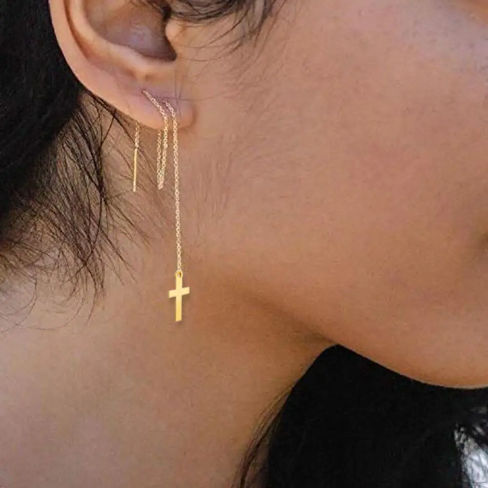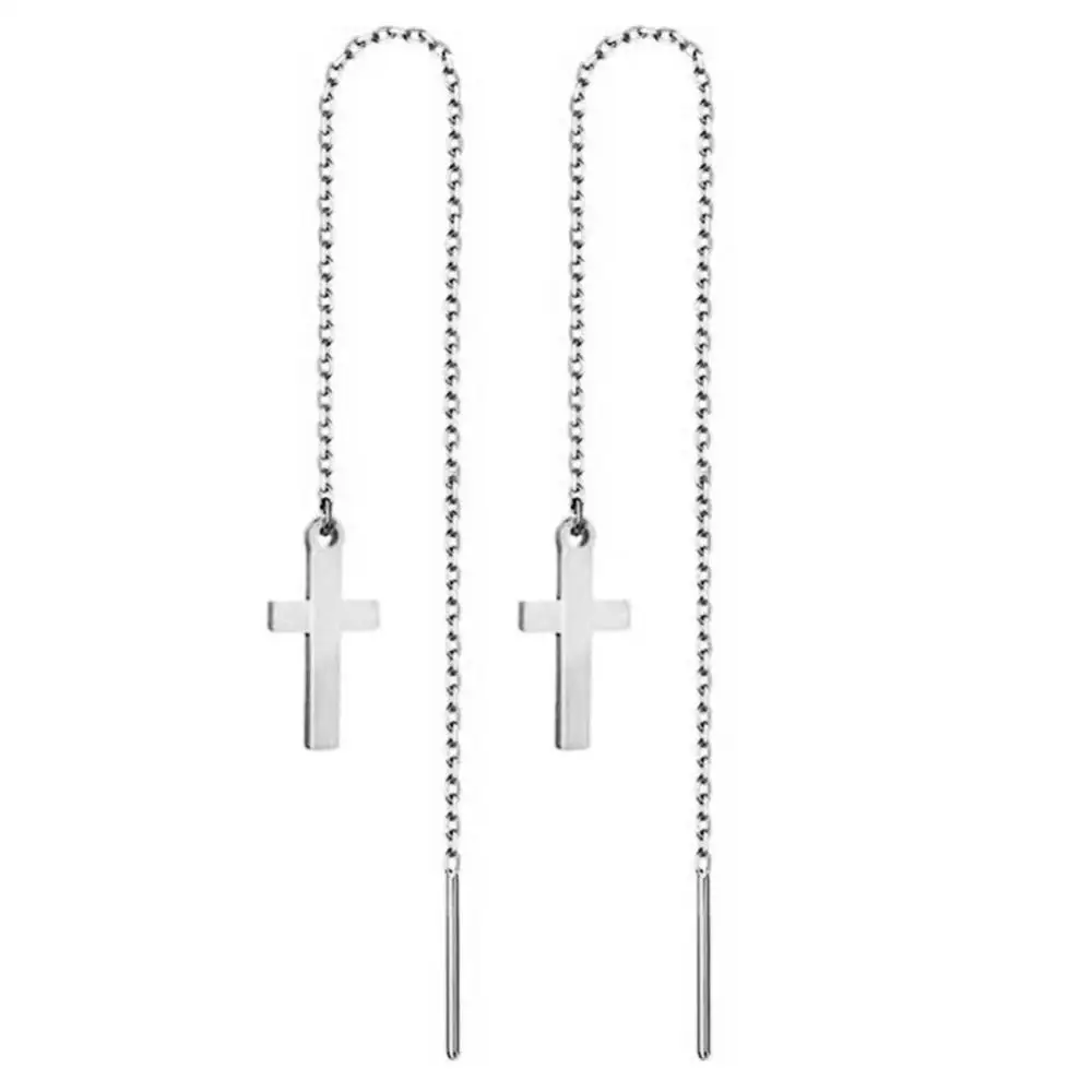 Женские длинные серьги из нержавеющей стали, корейские серьги с подвеской в виде креста, ювелирные изделия подвесная цепь, 2020
