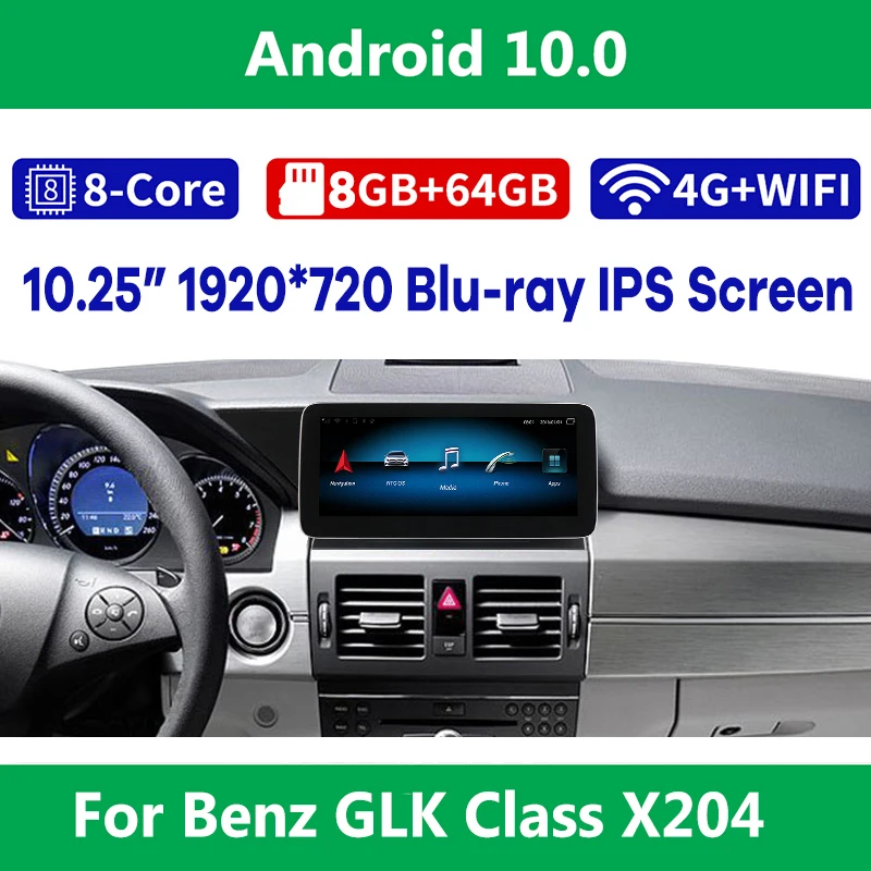 Автомобильная Мультимедийная система, плеер с экраном 10,25 дюймов, 8 ядер, ЦП, 8 ГБ ОЗУ, Android 10, GPS-навигация для Mercedes-Benz GLK Class X204 2008-2015, CarPlay