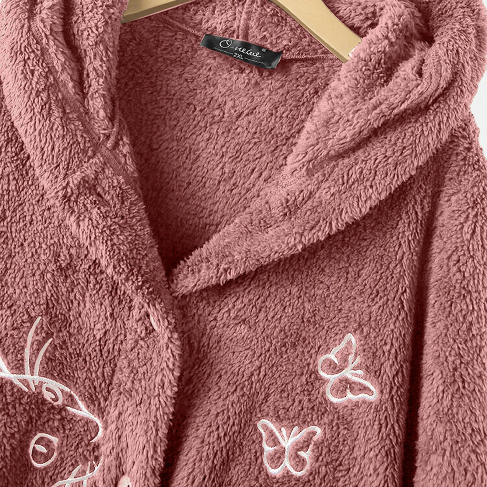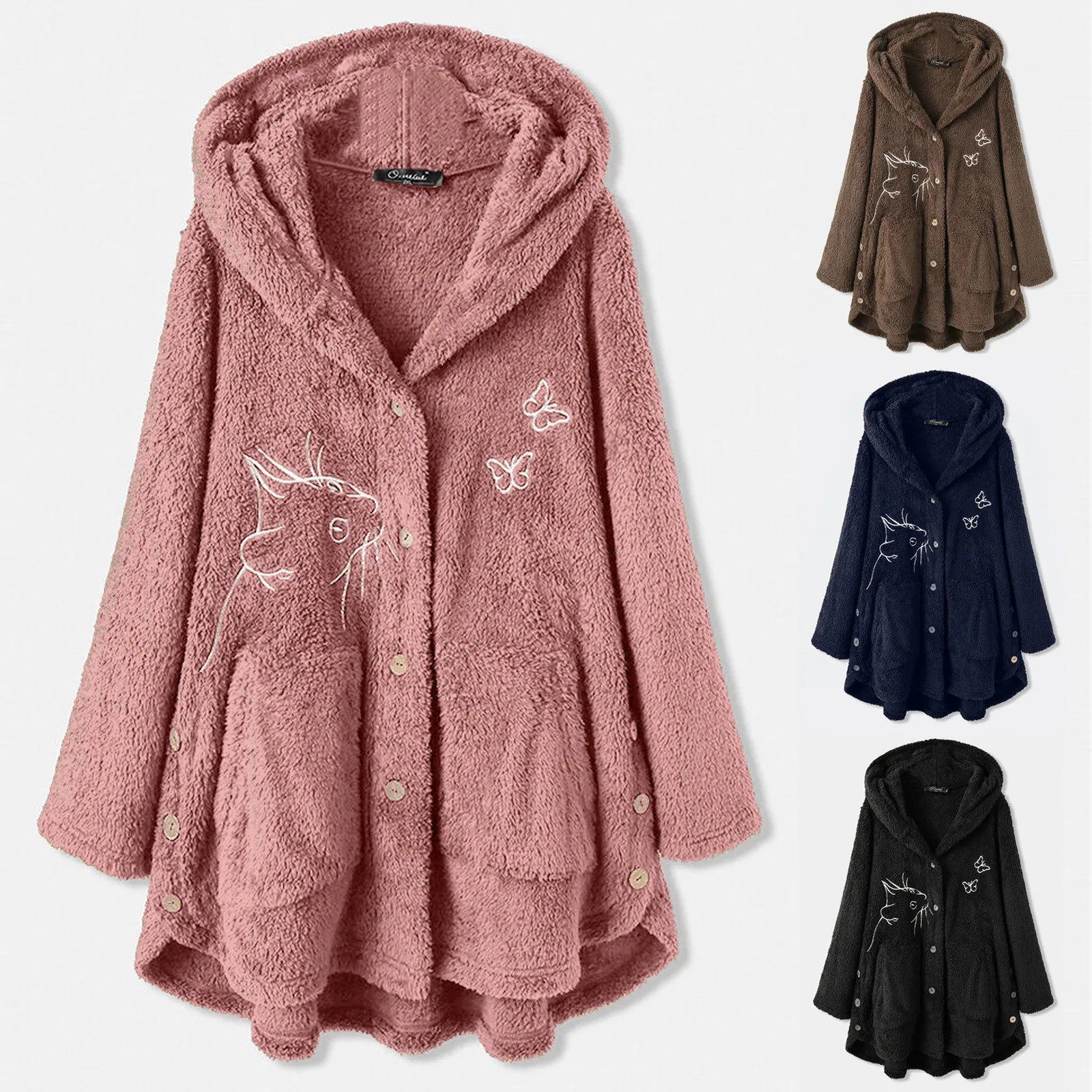 Женские плюшевые топы с принтом на пуговицах, Свободный кардиган с капюшоном, шерстяное пальто, зимняя куртка