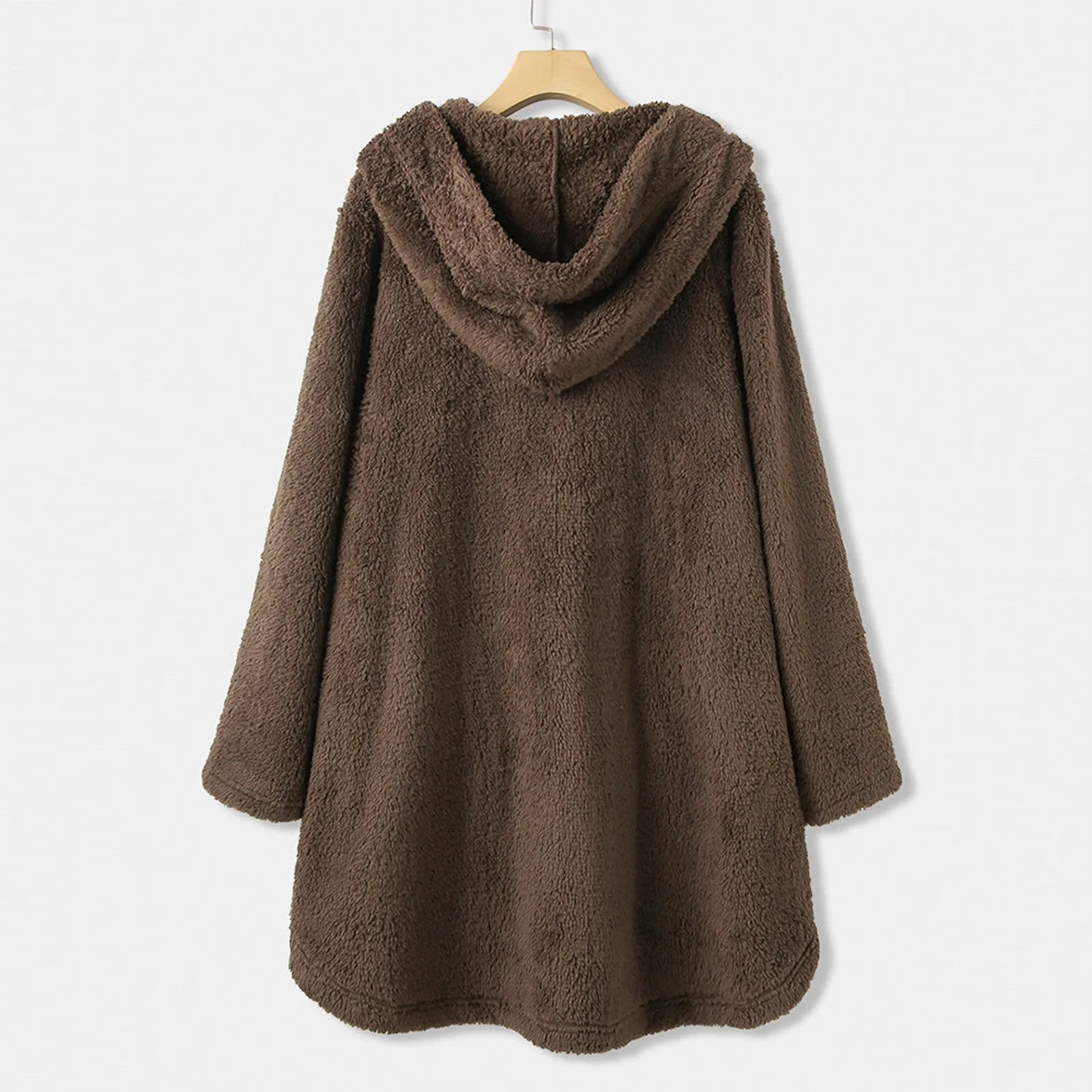 Женский плюшевый топ на пуговицах, Свободный кардиган с капюшоном, ...