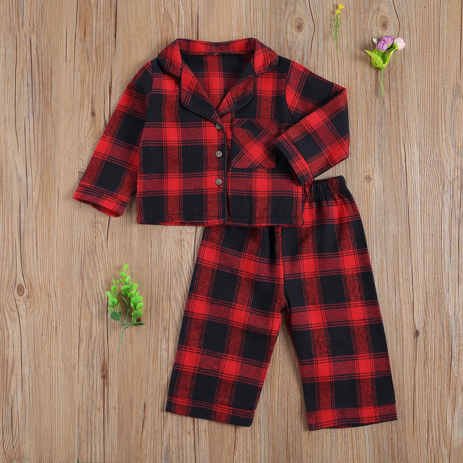 FOCUSNORM, осенне-зимние пижамные комплекты для маленьких девочек и мальчиков, клетчатый принт, однобортный Топ с длинным рукавом и карманами, брюки, брюки