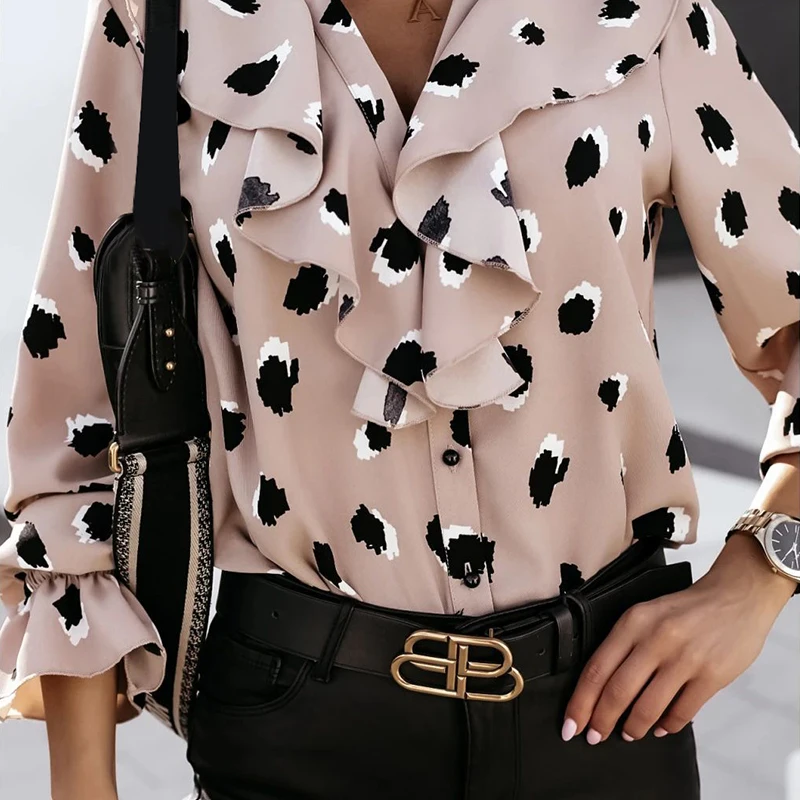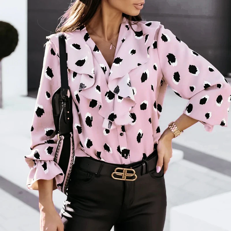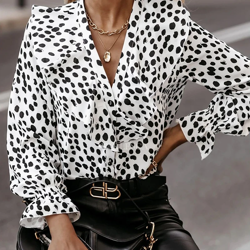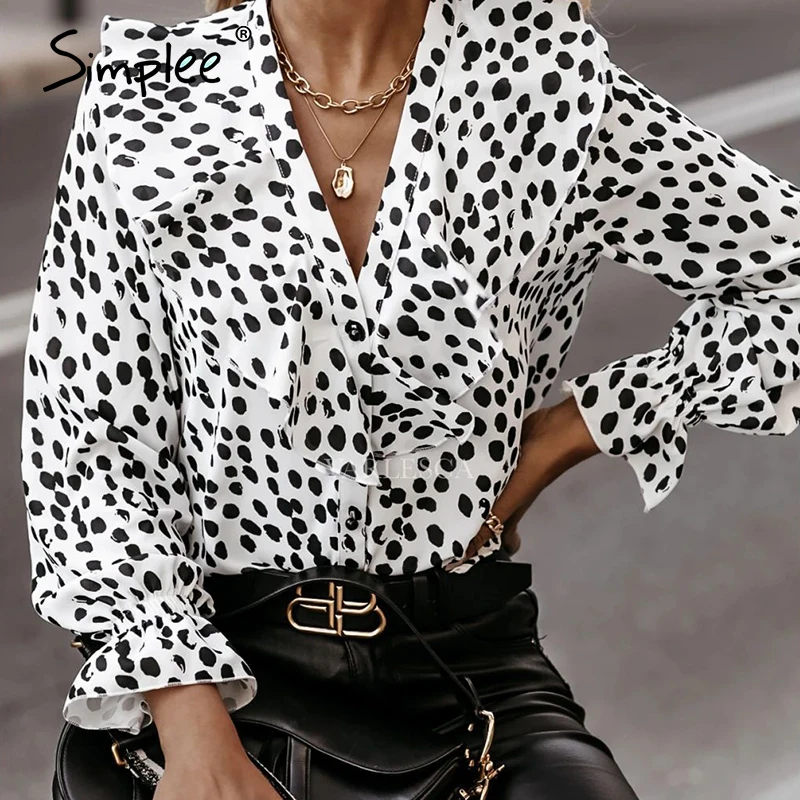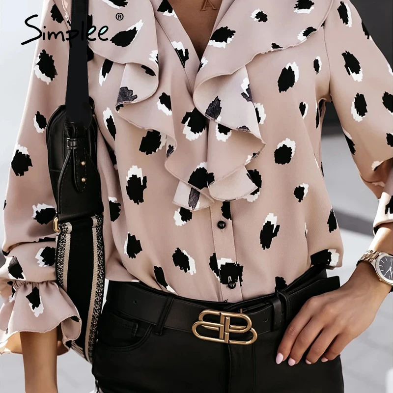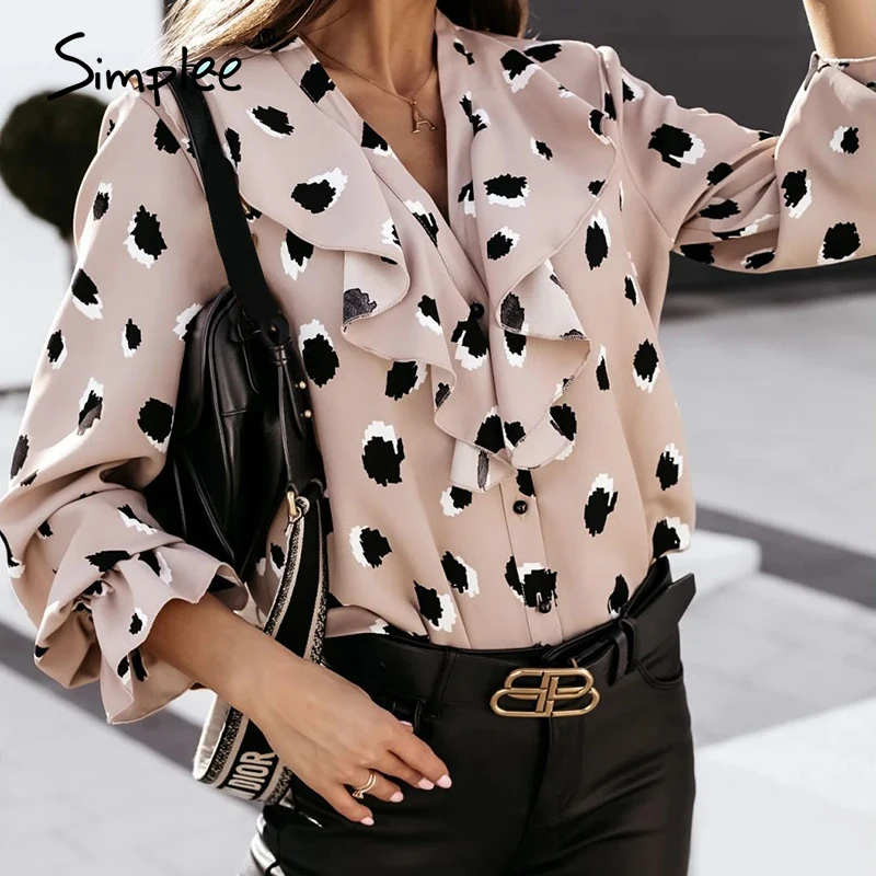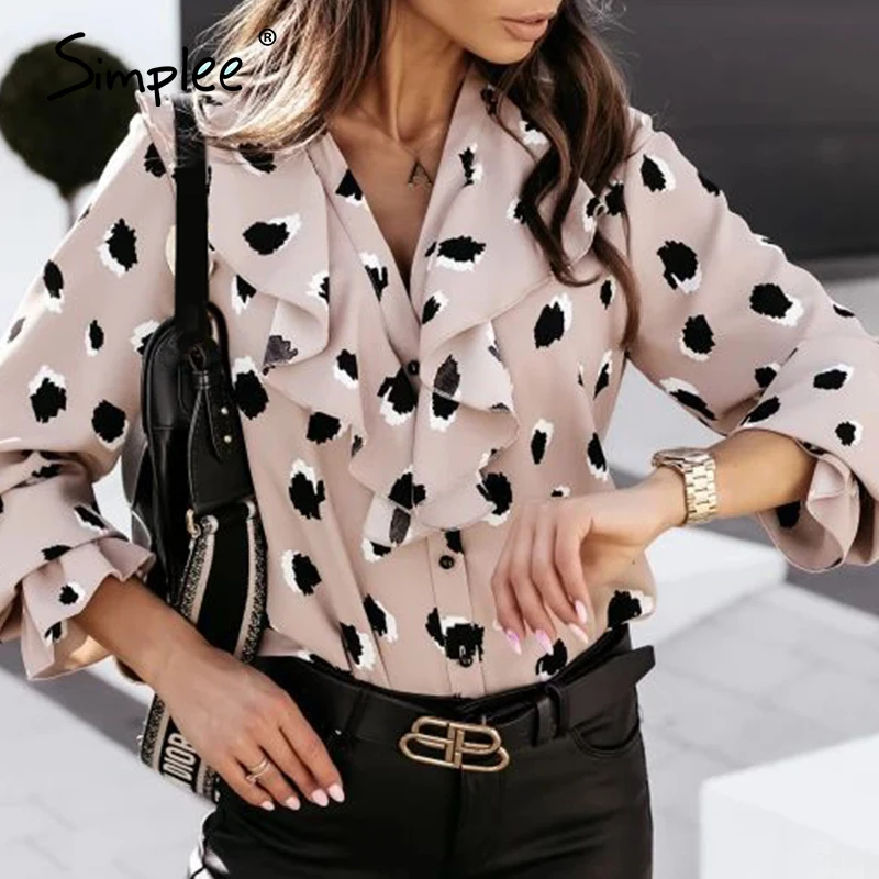 Женская блузка с v-образным вырезом Simplee, элегантная Свободная шифоновая рубашка свободного покроя с принтом на осень, новинка 2020