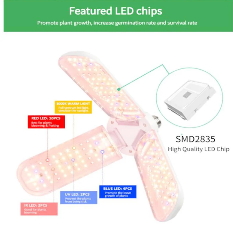 Фитолампа, светодиодная лампа полного спектра E27 для выращивания растений, 110 В, 220 В