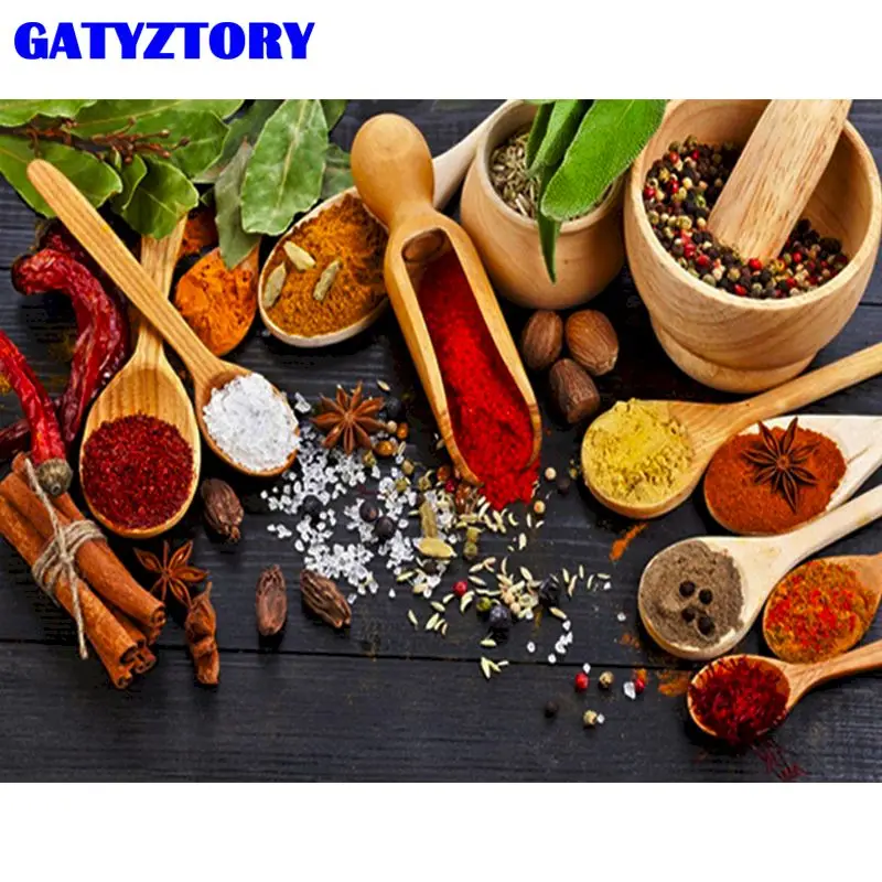 GATYZTORY краска по номерам ручная краска ed 60x75 см рамка на холсте кухня Спайс Масляная картина домашнее украшение для стен искусство подарок