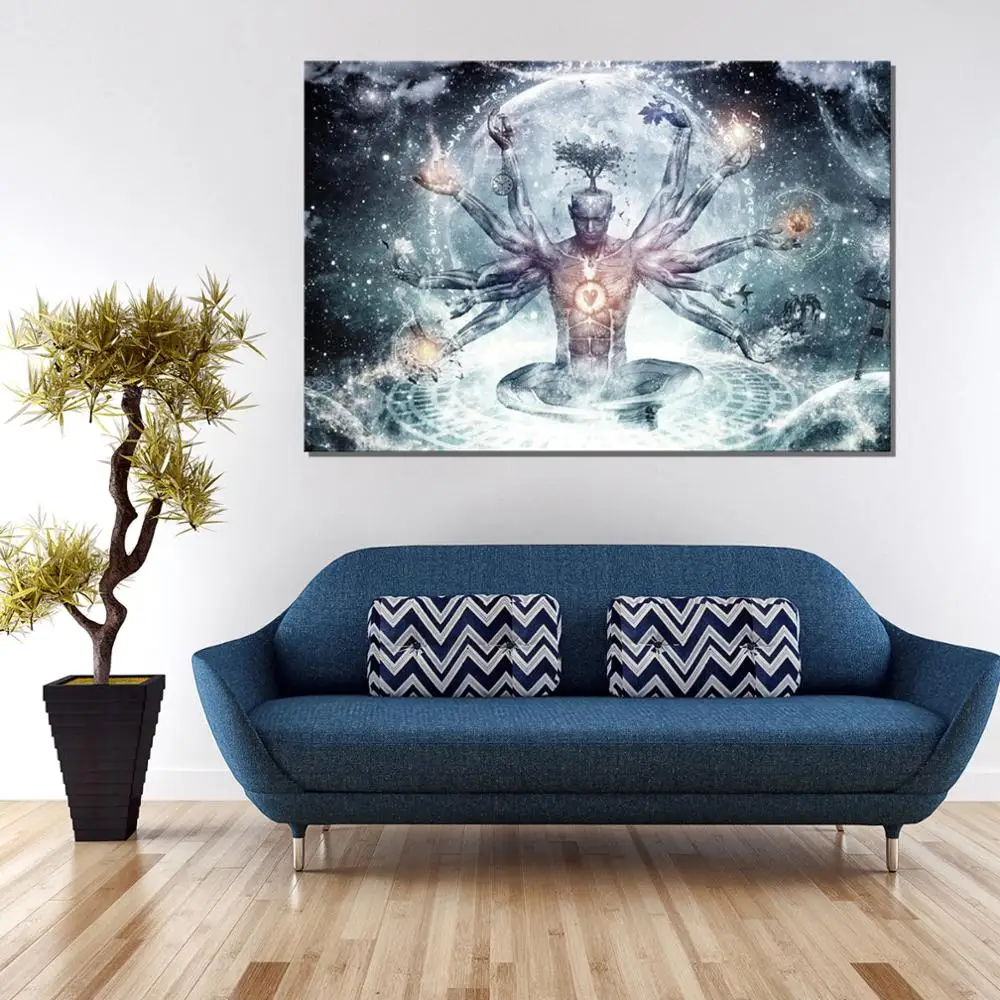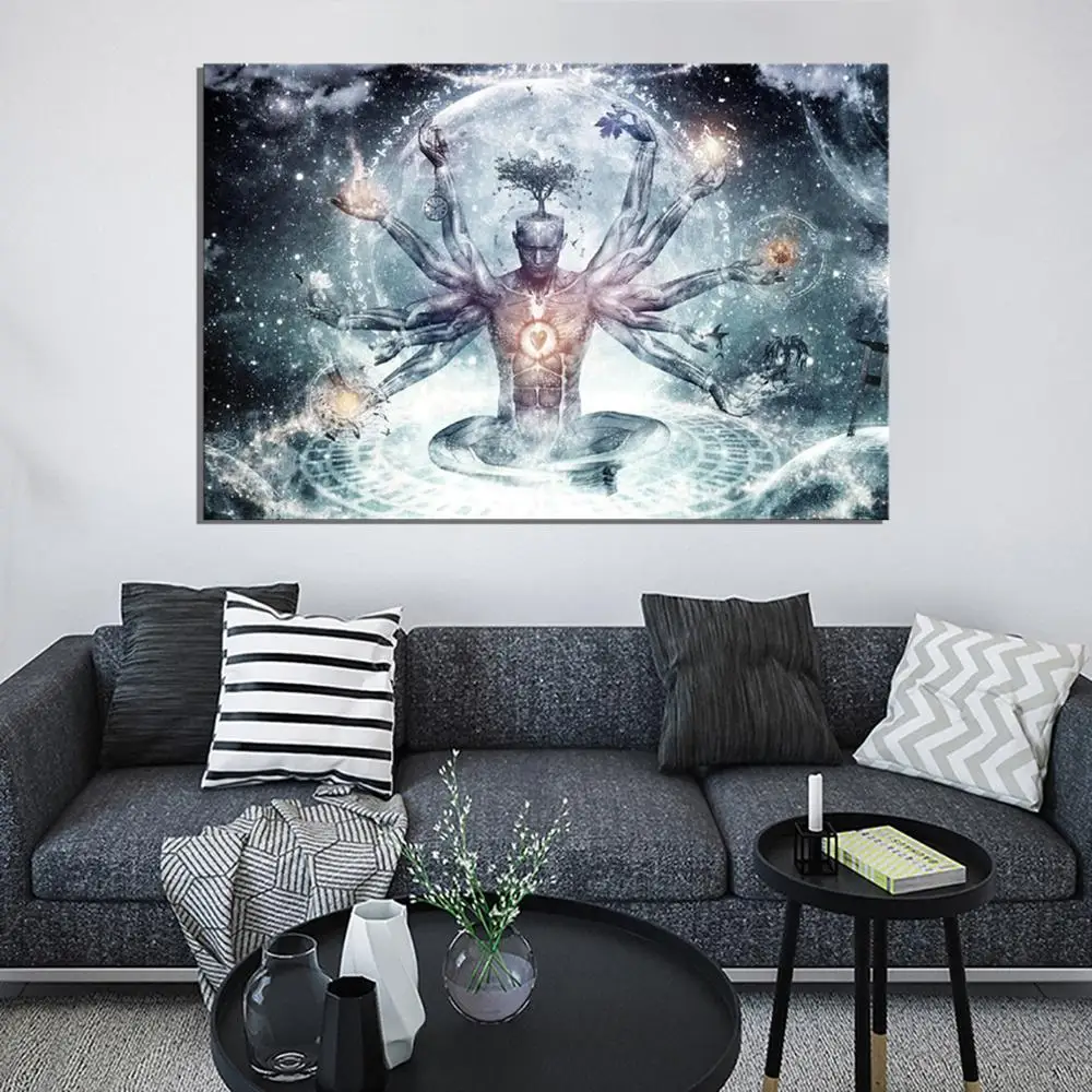 Религиозная фигурка Будды Shiva Lord, Картина на холсте, психоделич...
