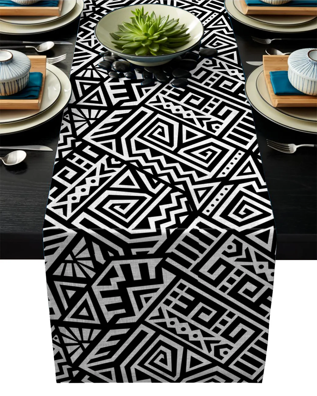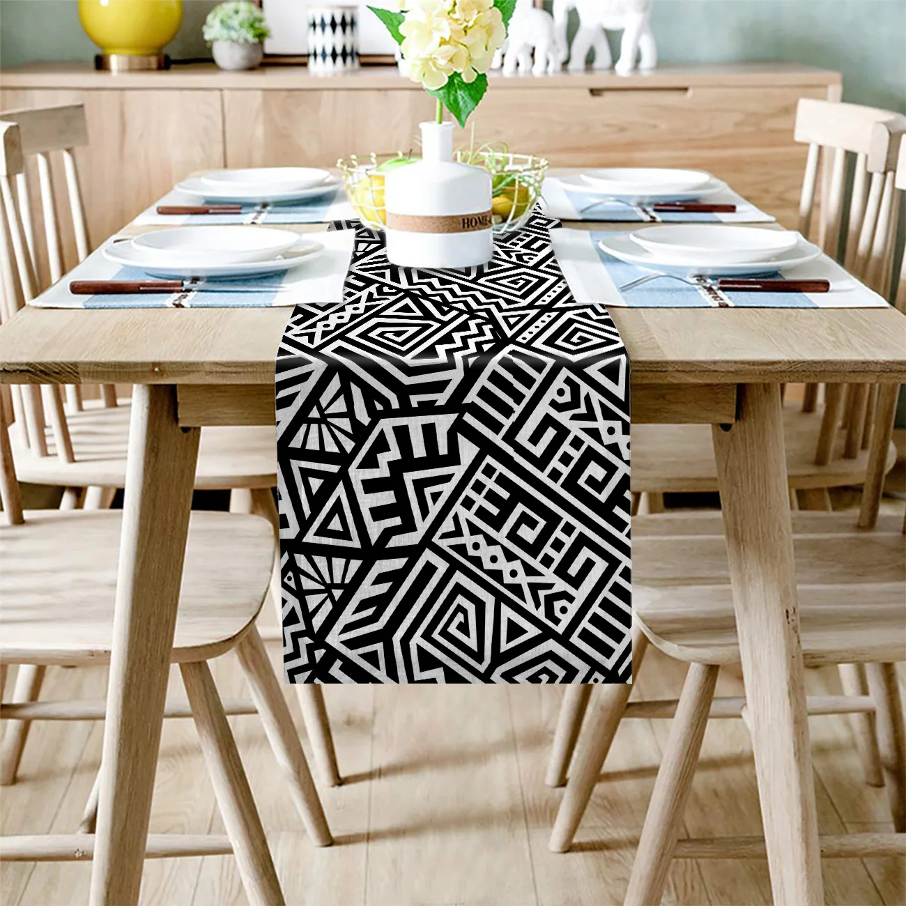 Черно-белая настольная дорожка с геометрическим рисунком, 5 размеров