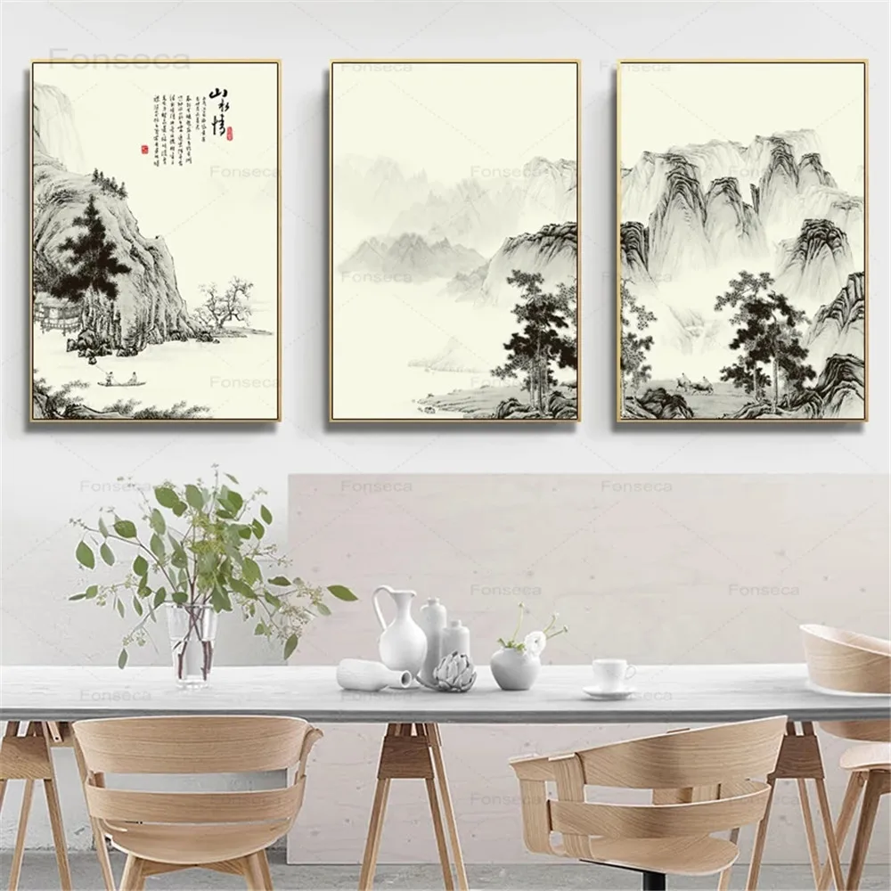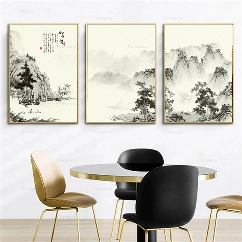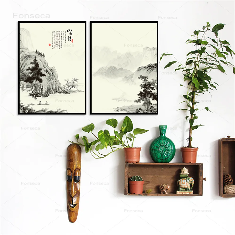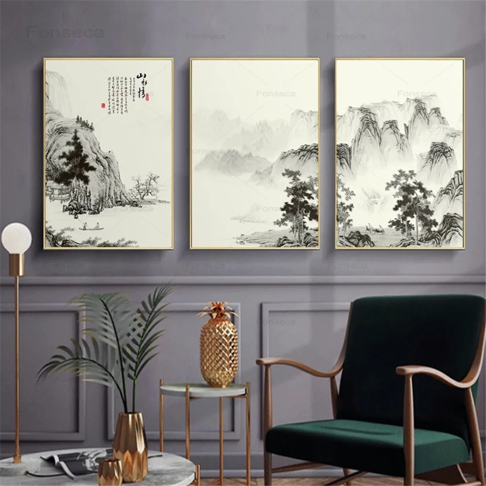 Пейзаж в китайском стиле, плакат, креативные чернила, принты гор, Картина на холсте, украшение для дома, настенные картины для гостиной