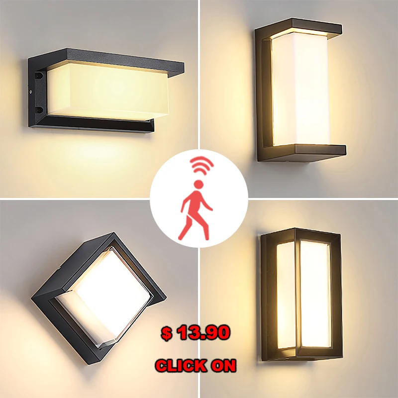 Настенный светильник, светодиодный датчик движения IP65, водонепроницаемый, 9 Вт, 12 Вт, 20 Вт, бра для дома и улицы, для спальни, гостиной, двора, коридора, входа