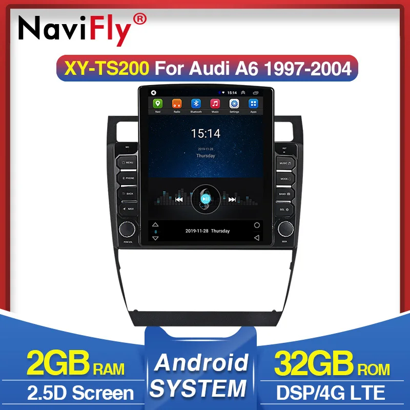 Автомагнитола для Audi A6 9,7-1997, 4G LTE, DSP, 2004 дюйма, GPS, 2DIN, DVD