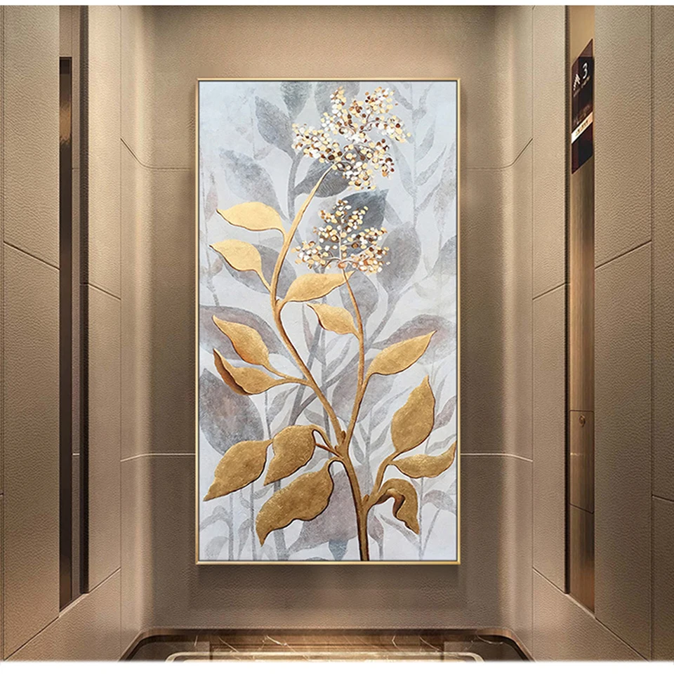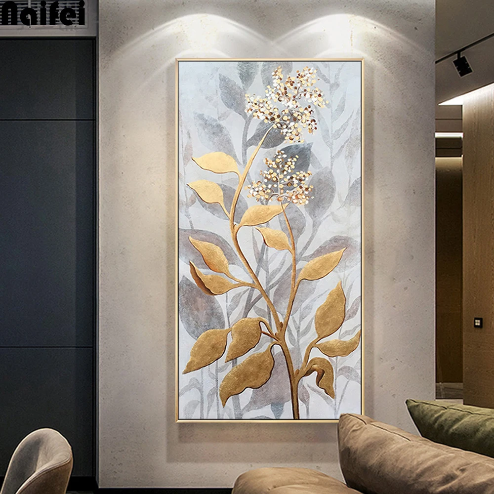 Большая 5D Алмазная мозаика «сделай сам», Золотое растение, цветы, листья, набор 3D алмазной мозаики, полные стразы, картина для вышивки, Алмазная мозаика