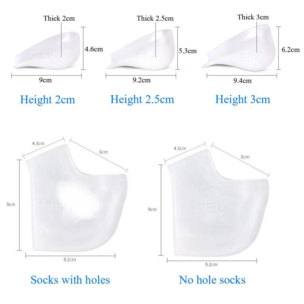 EiD, унисекс, невидимые, увеличивающие рост силиконовые носки, гелевые подушечки на пятке, стельки, массажные ортопедические супинаторы для ног