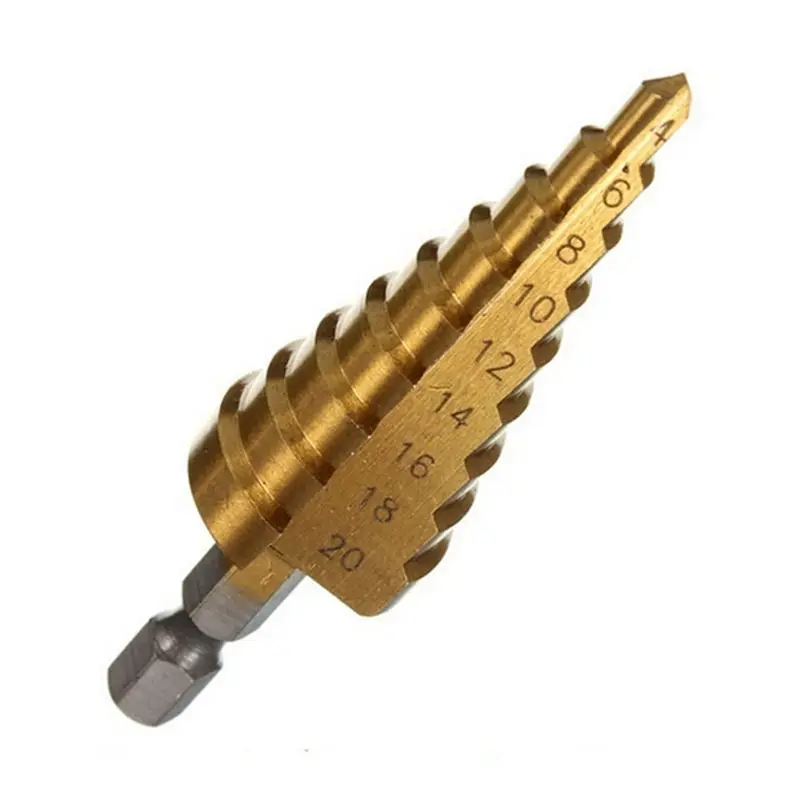 Это новая быстрорежущая сталь с большим шаговым Конусным сверлом, титановый набор сверл, который сделан из высококачественной быстрорежущей стали и с титановым покрытием, чтобы уменьшить трение и тепло