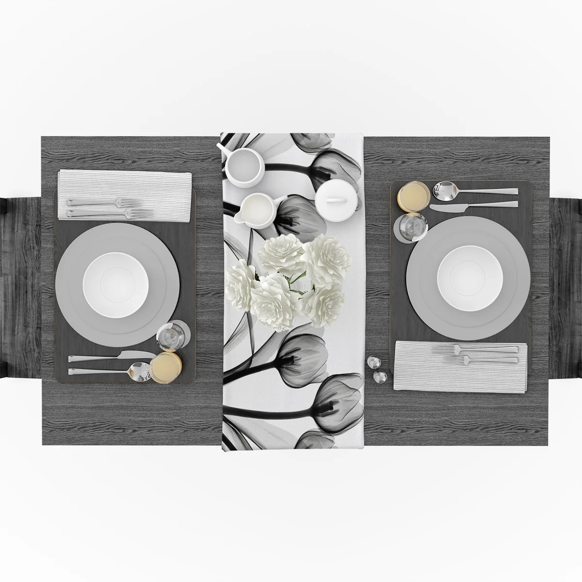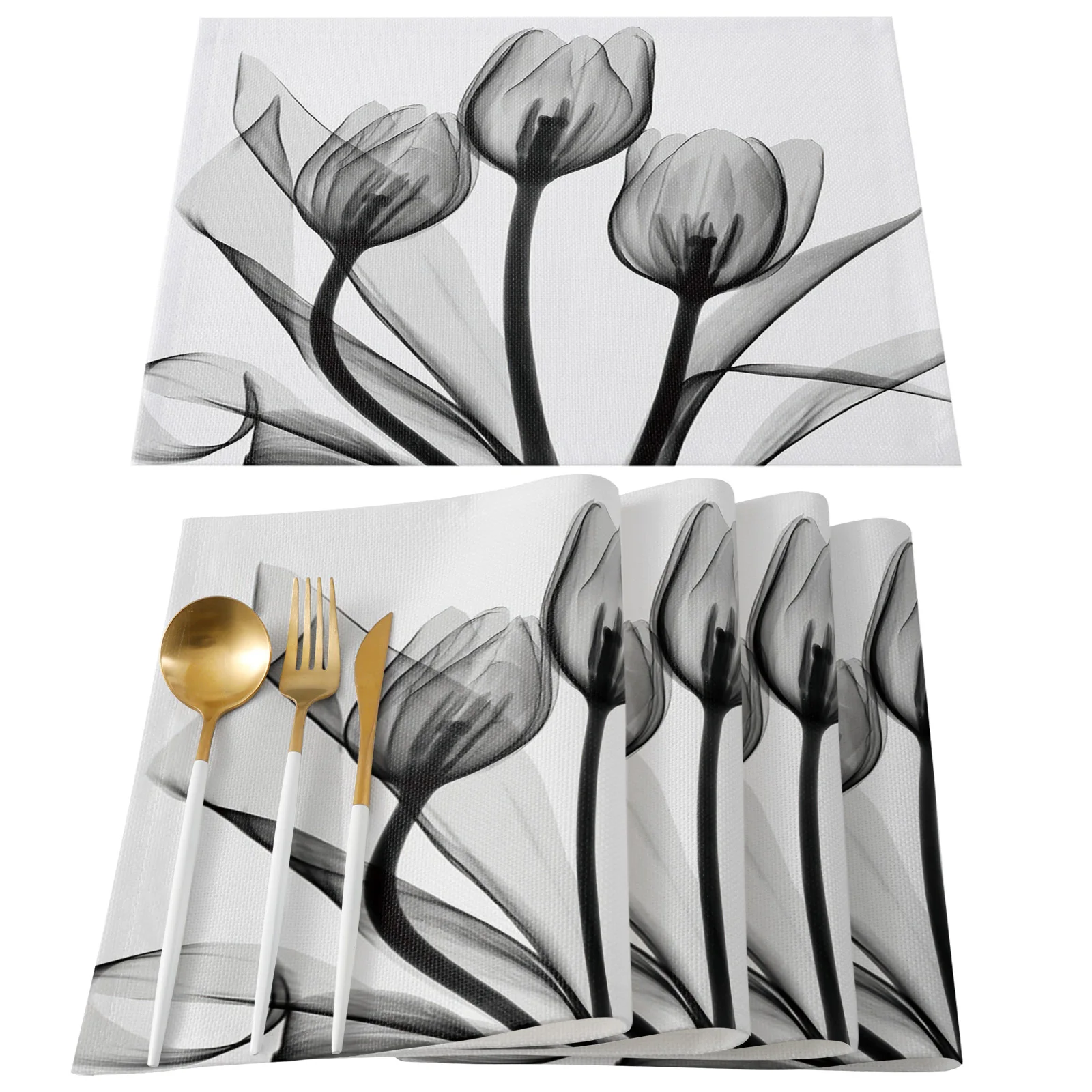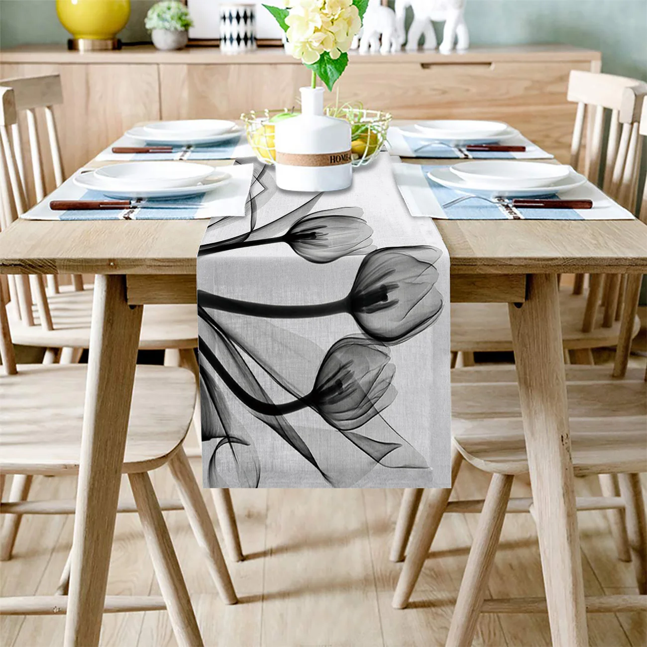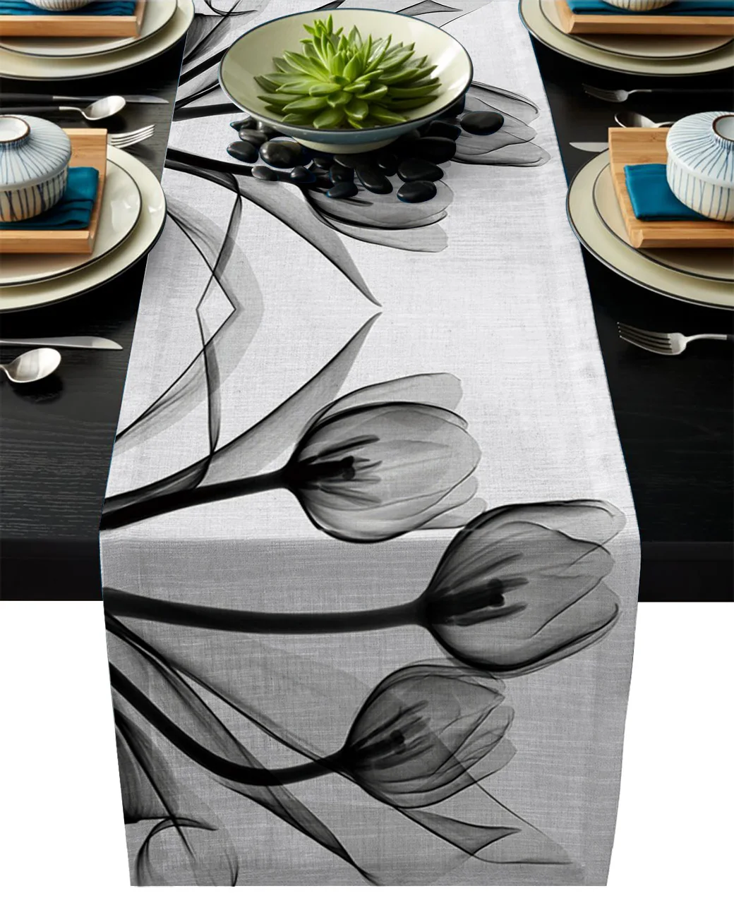 Цветок тюльпана черно-белый силуэт настольная дорожка льняной хлопчатобумажный настольный флаг современный декор для вечеринки свадьбы столовые скатерти