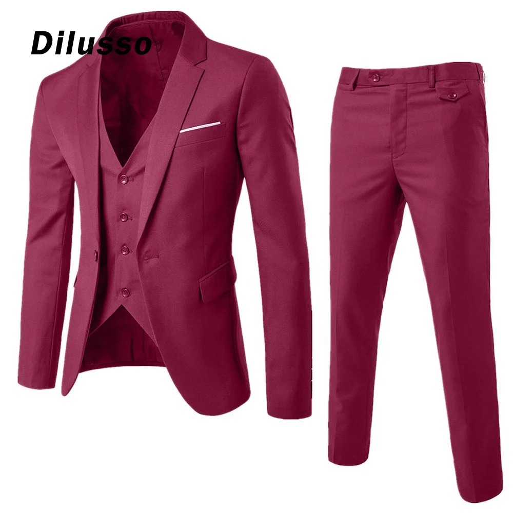Костюм мужской облегающий из 3 предметов, пиджак и брюки, жилет, пиджак для свадьбыВечеринки, однотонный модный костюм разных цветов, Осень-зима