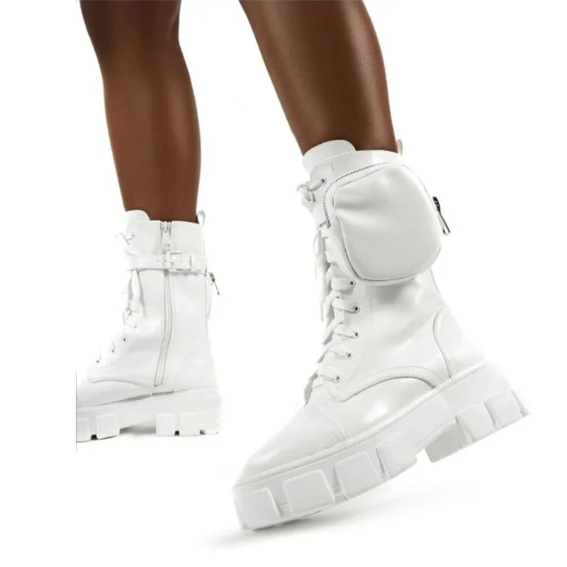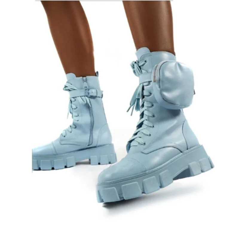 Женские ботильоны на платформе, со шнуровкой и карманами