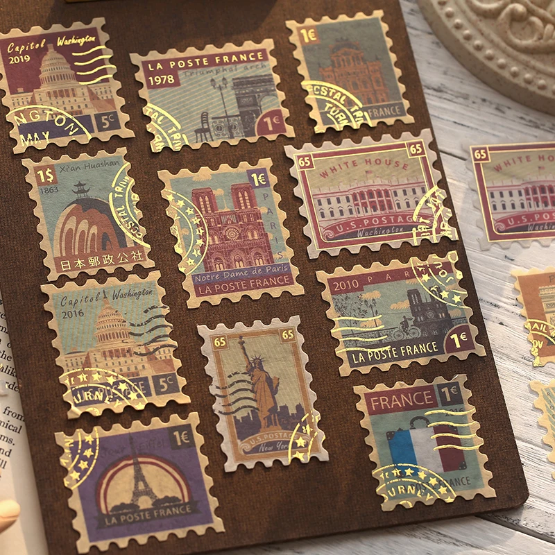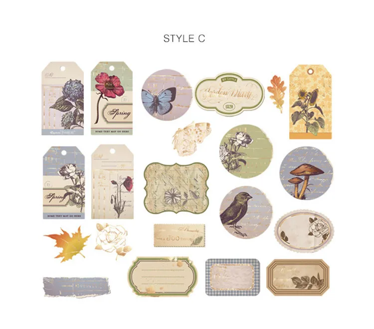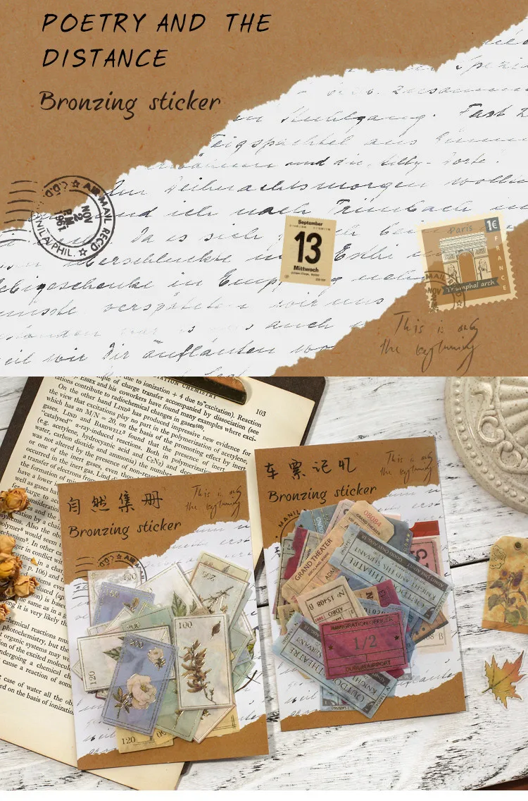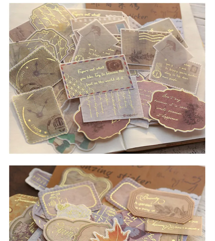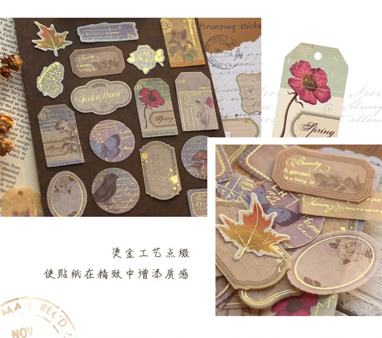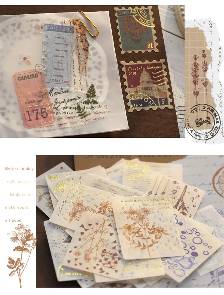 40 шт.упак., винтажные Ретро бронзовые стемпинговые наклейки из бумаги васи, дорожные наклейки "растения" сделай сам, декоративные канцелярские наклейки