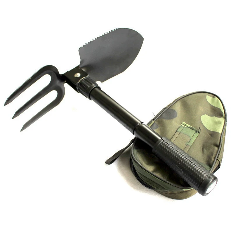 3. Его можно сложить, маленький размер и легко носить с собой. После разворачивания один конец-лопата, а другой-грабли. Гибкий, складной, ручка может быть горизонтальной и вертикальной, это необходимо для активного отдыха на природе