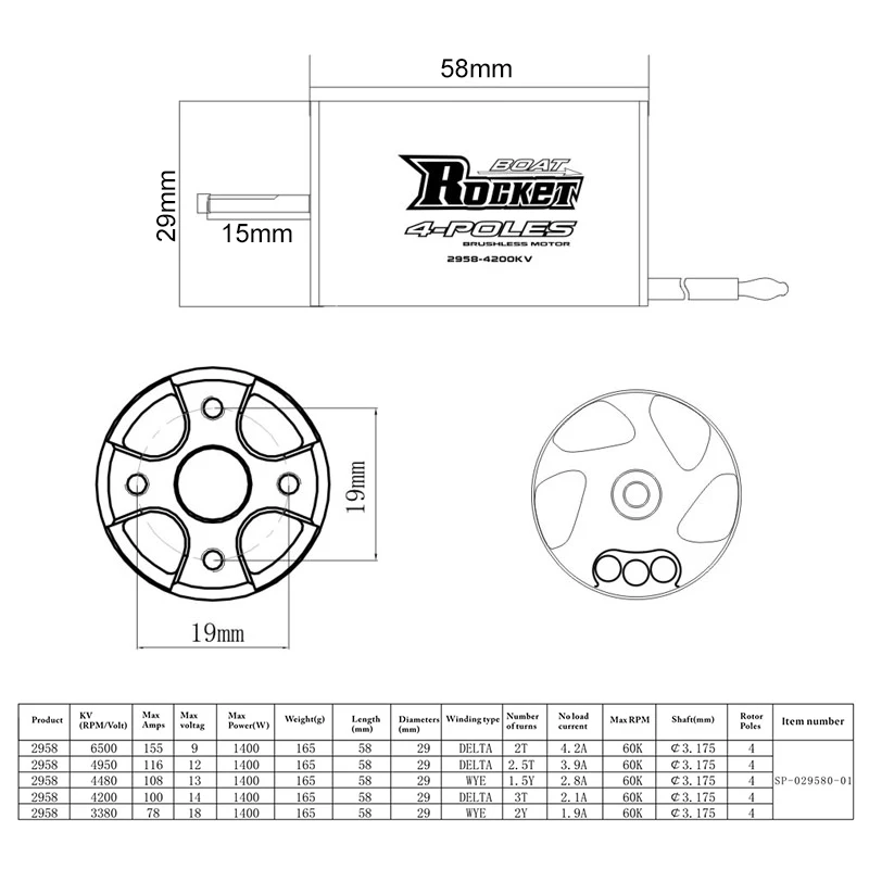 Rocket 2958 3380KV 4P 3,175 мм бесщеточный Бесконтактный двигатель ...