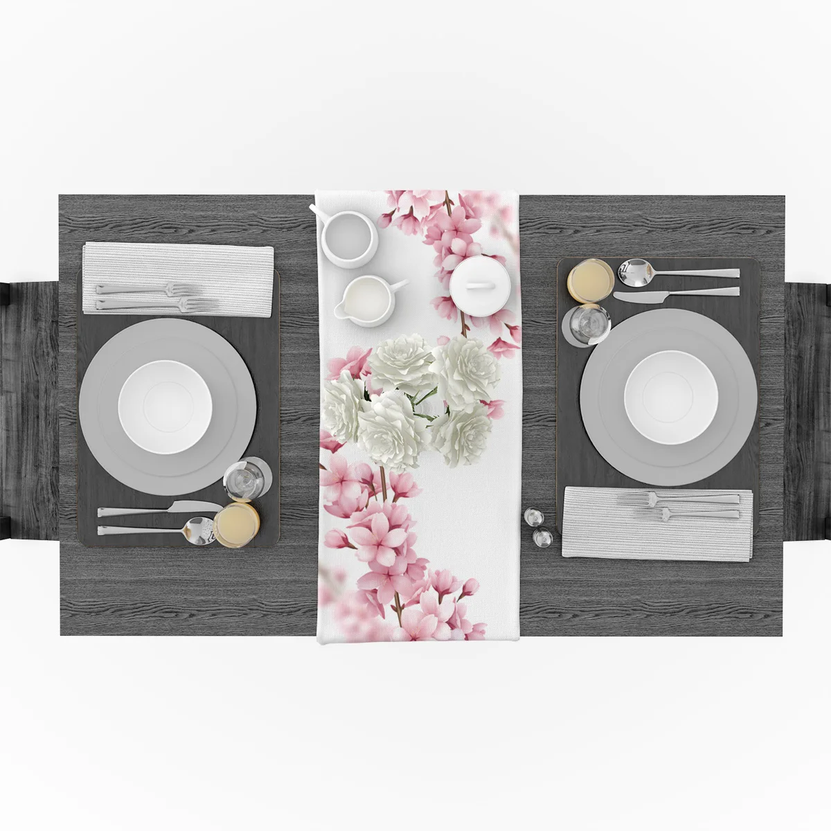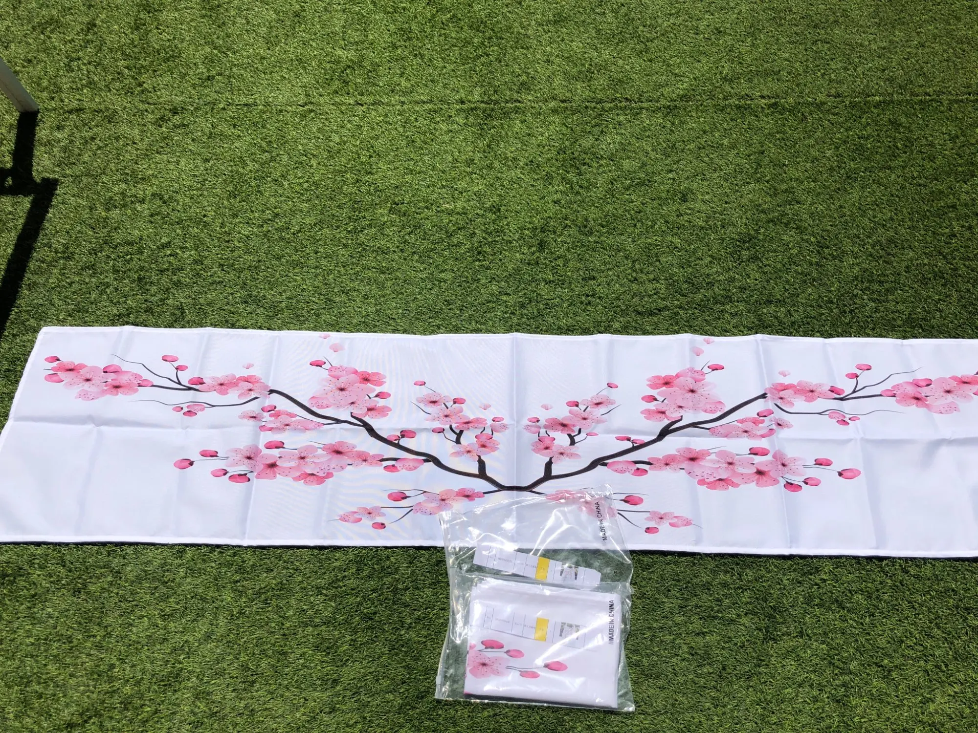 Полотно, мешковина настольная дорожка, комод, шарфы, розовые вишневые цветы, кухонная настольная дорожка для ужина, праздника, свадебного декора