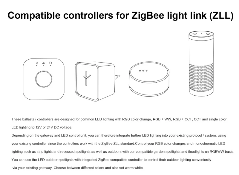 1. Контроллер zigbee работает со шлюзом zigbee zll, как Amazon ECHO Plus ,H * U * E,O * sr * am,IK * E * A