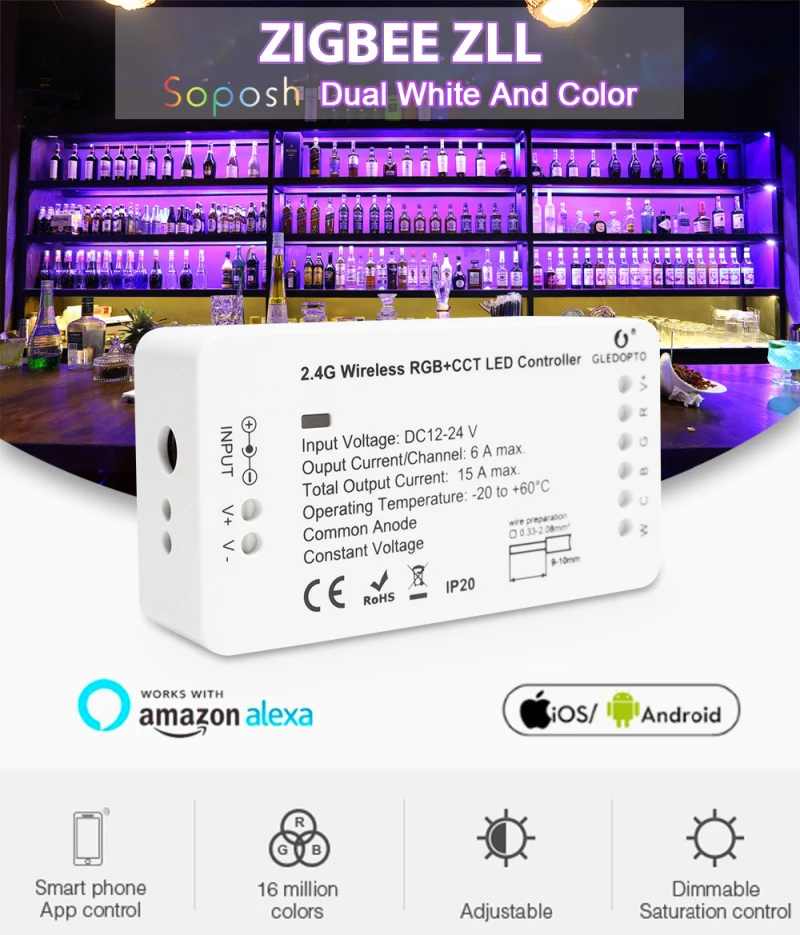 G светодиодный OPTO RGB + CCT Zigbee умный светодиодный светильник полосы контроллера 1ID2ID DC12-24V умный дом работать мост Amazon Alexa Echo