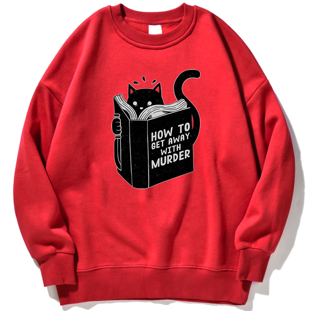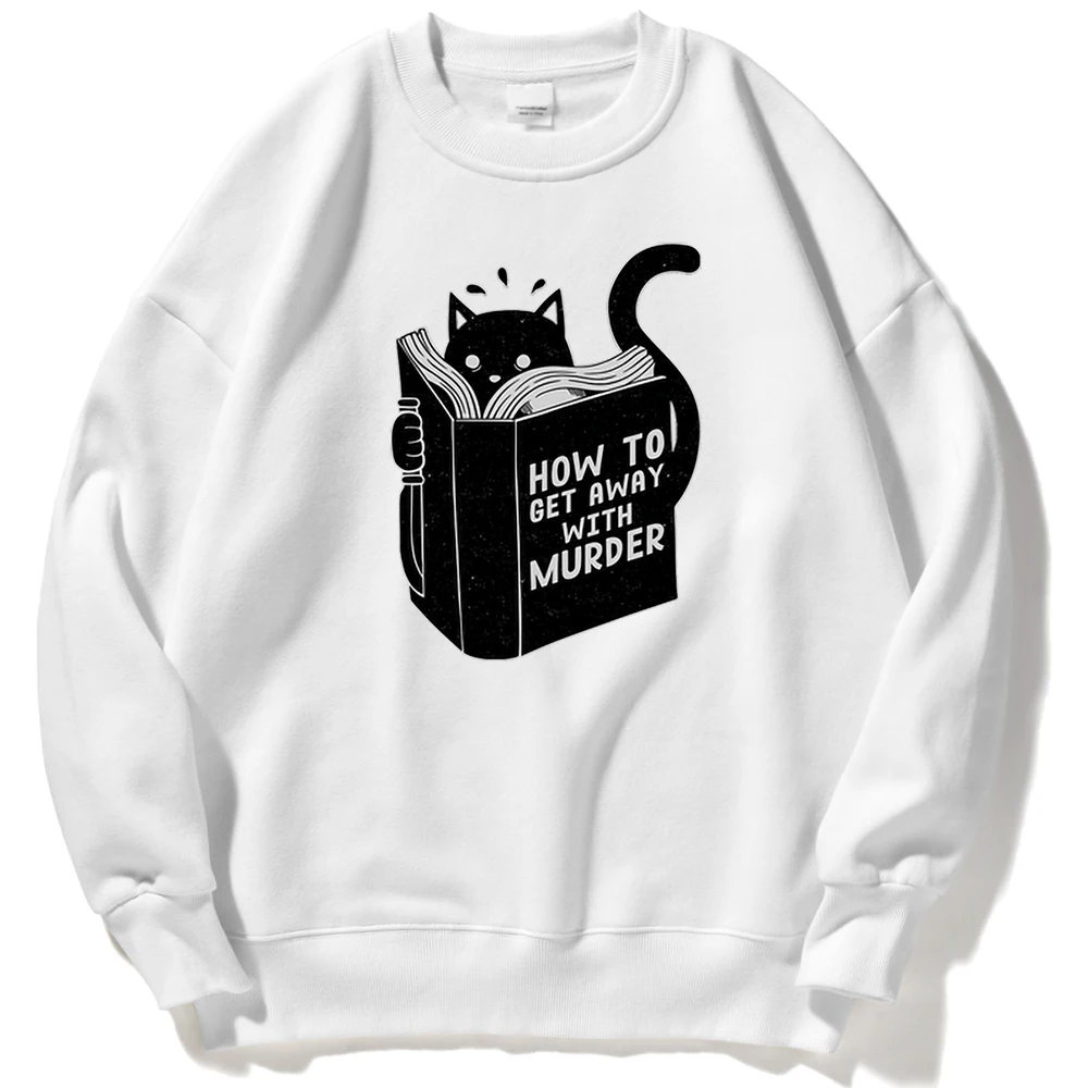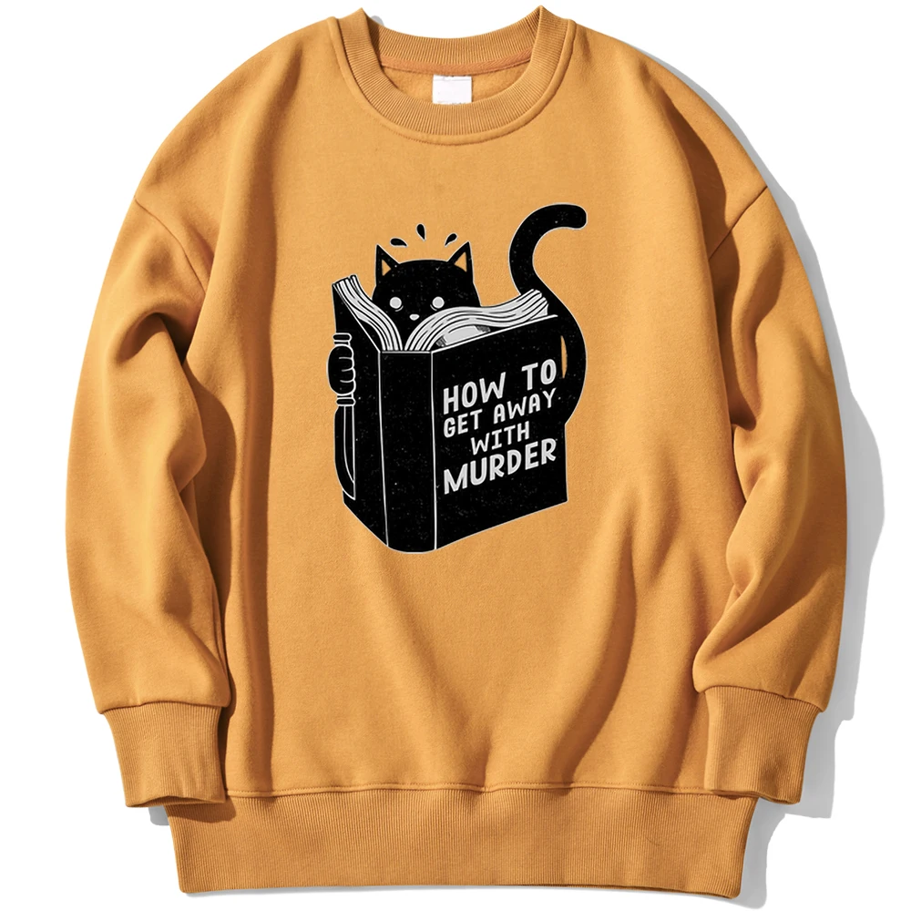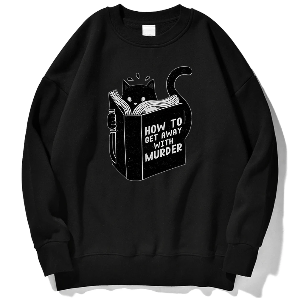 Свитшот мужской с круглым вырезом, уличный тренировочный костюм с принтом книги для чтения с черным котом, в стиле ретро