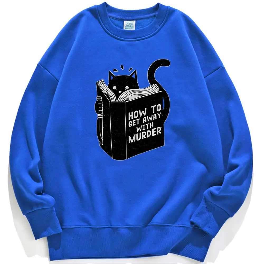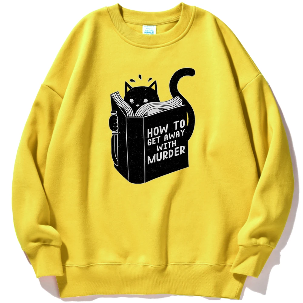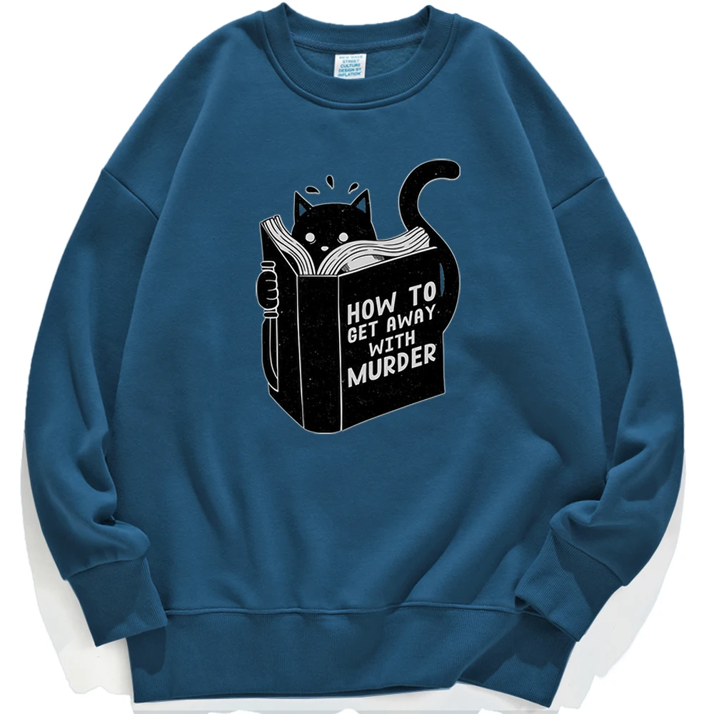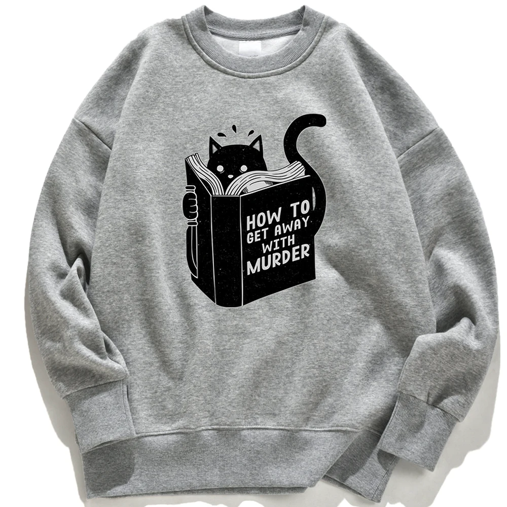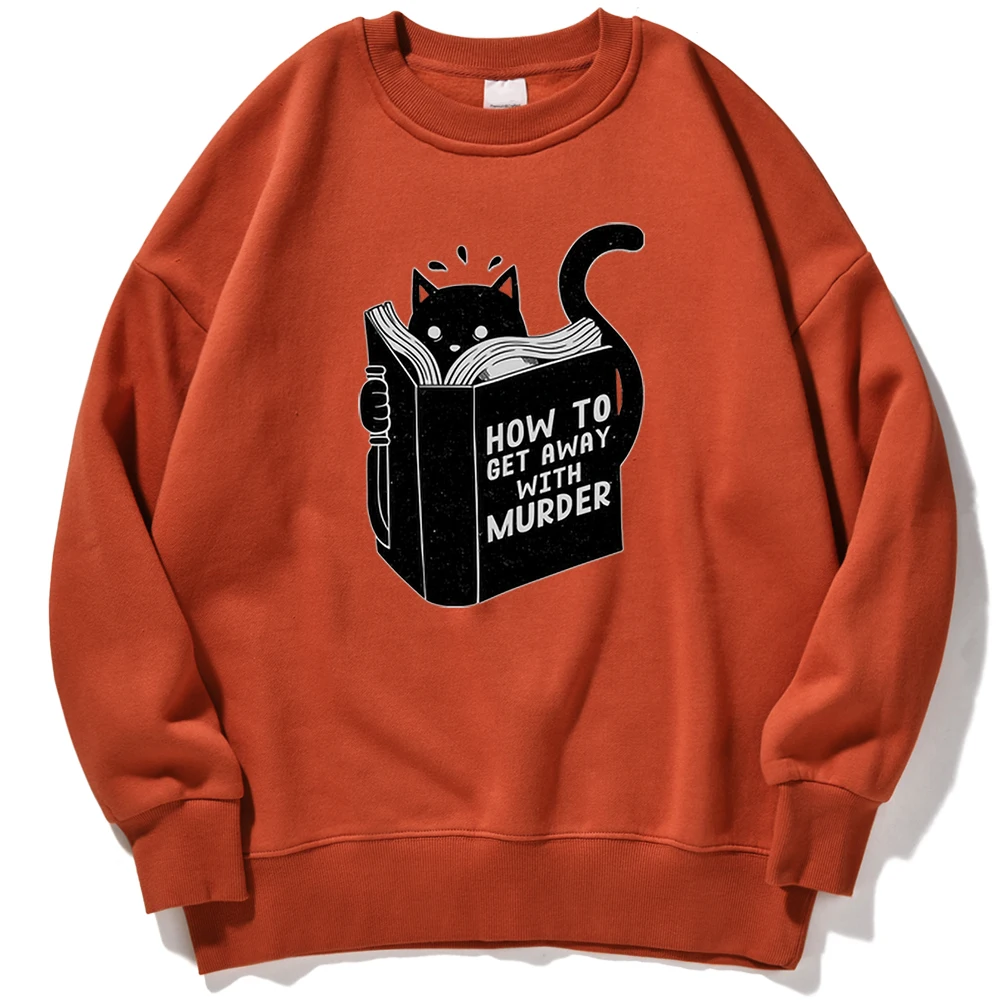 Свитшот мужской с круглым вырезом, уличный тренировочный костюм с принтом книги для чтения с черным котом, в стиле ретро