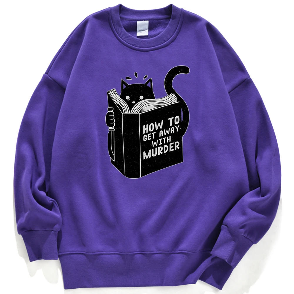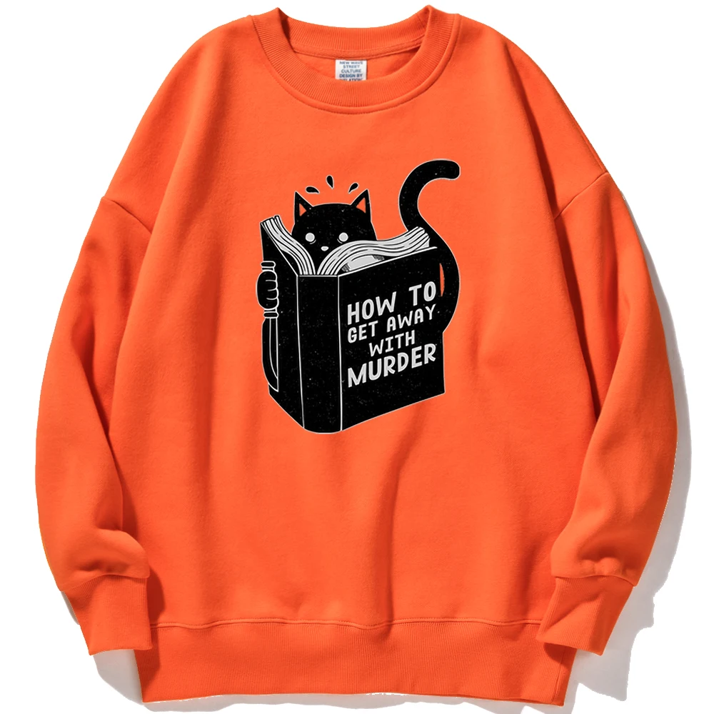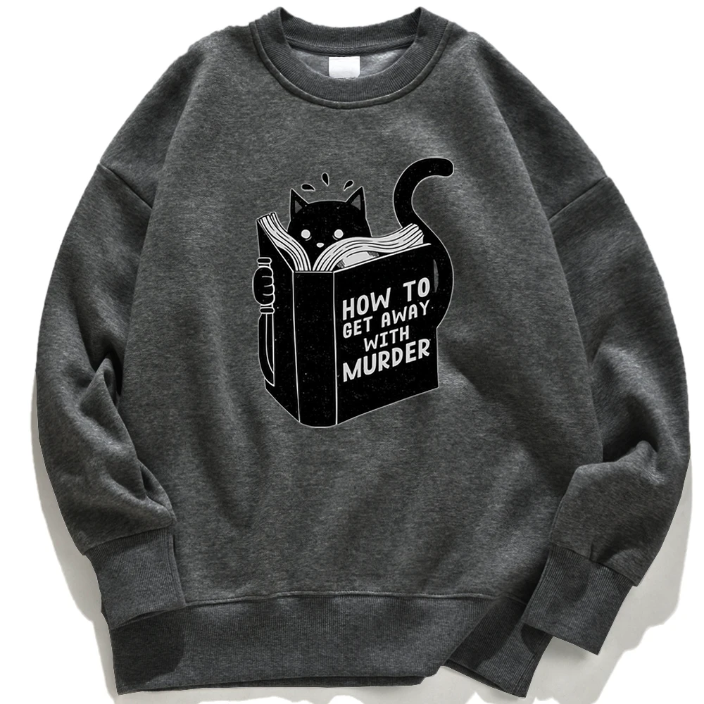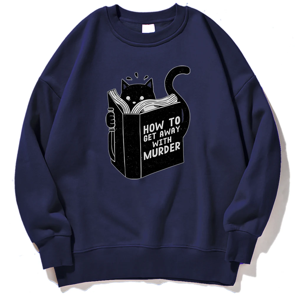 Свитшот мужской с круглым вырезом, уличный тренировочный костюм с принтом книги для чтения с черным котом, в стиле ретро