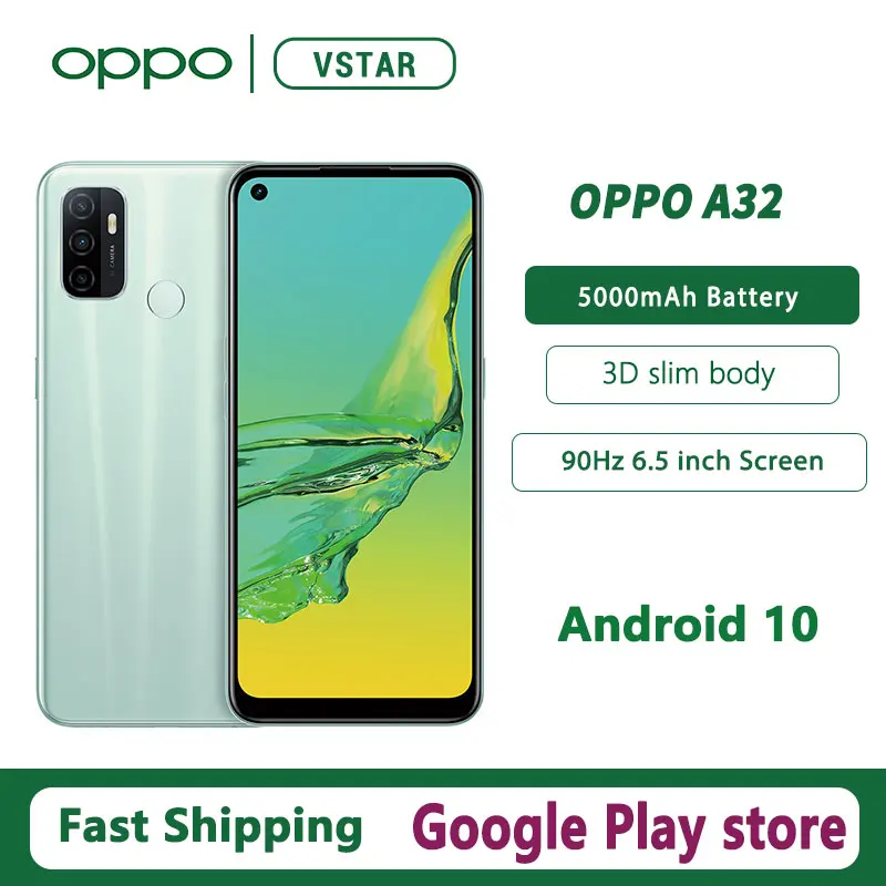 Смартфон OPPO A32, экран 6,5 дюйма, 90 Гц, Восьмиядерный процессор SM4250, Android 10, сканер отпечатков пальцев, 18 Вт, быстрая зарядка, Google Play
