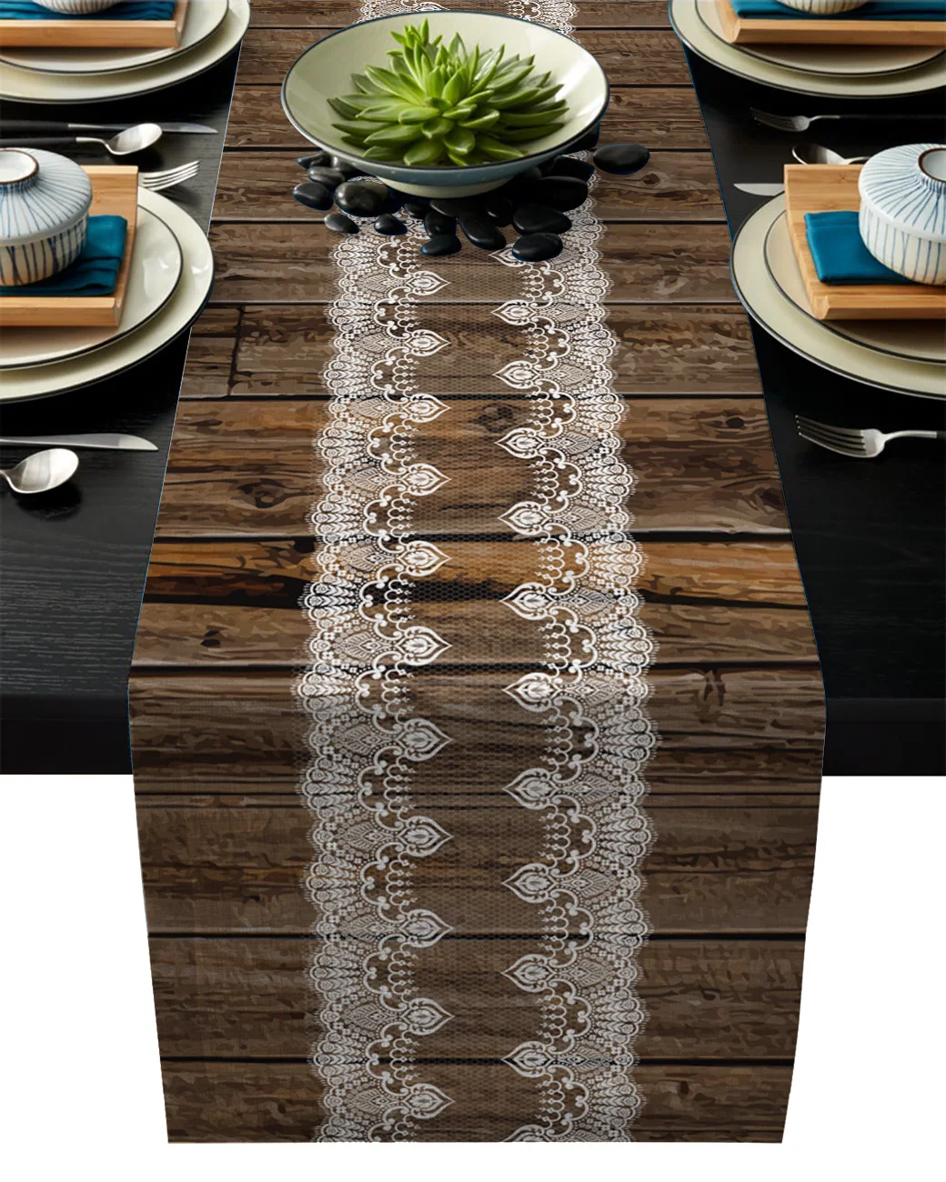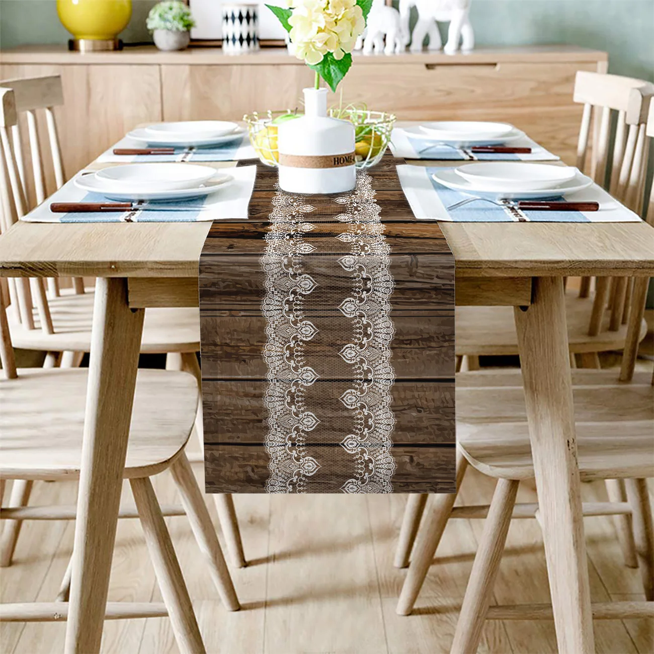 Деревянная текстура, кружево, узор, коричневый, деревенский, настольный бегун для дома, столовой, Декор, скатерть, свадебная, Рождественская вечеринка, настольный бегун s