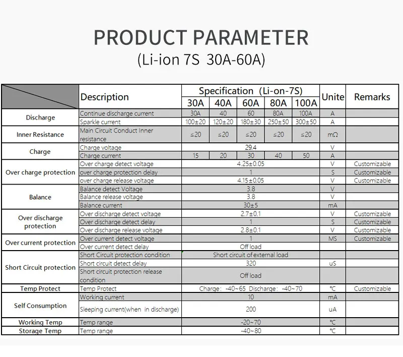 Техническая спецификация для 3,7 V литий-ионный аккумулятор BMS( 10A-60A)